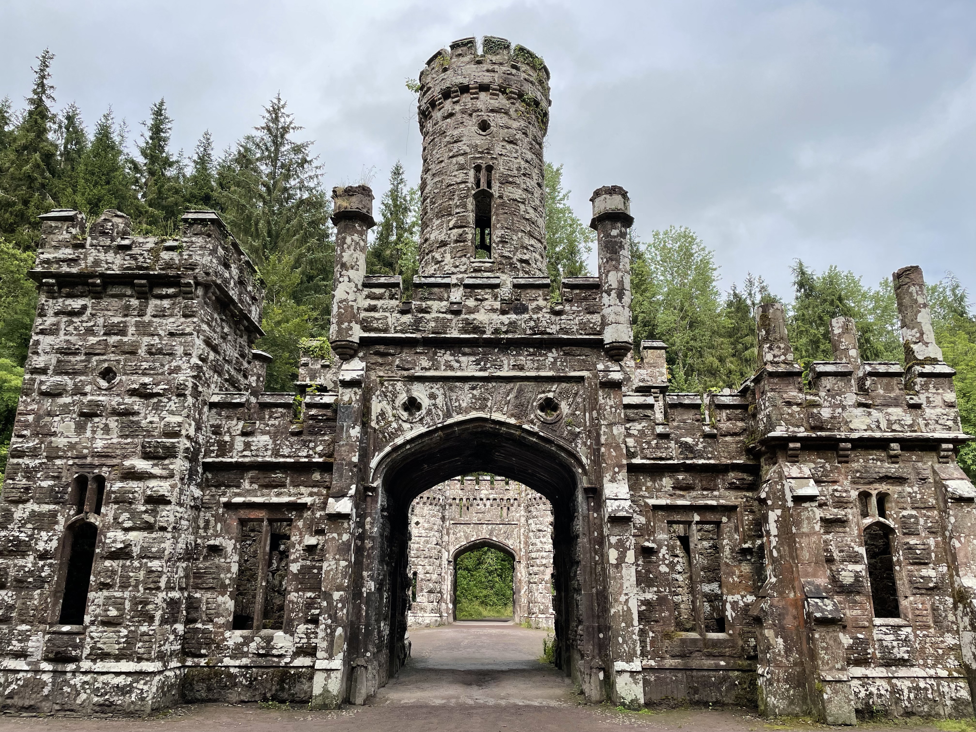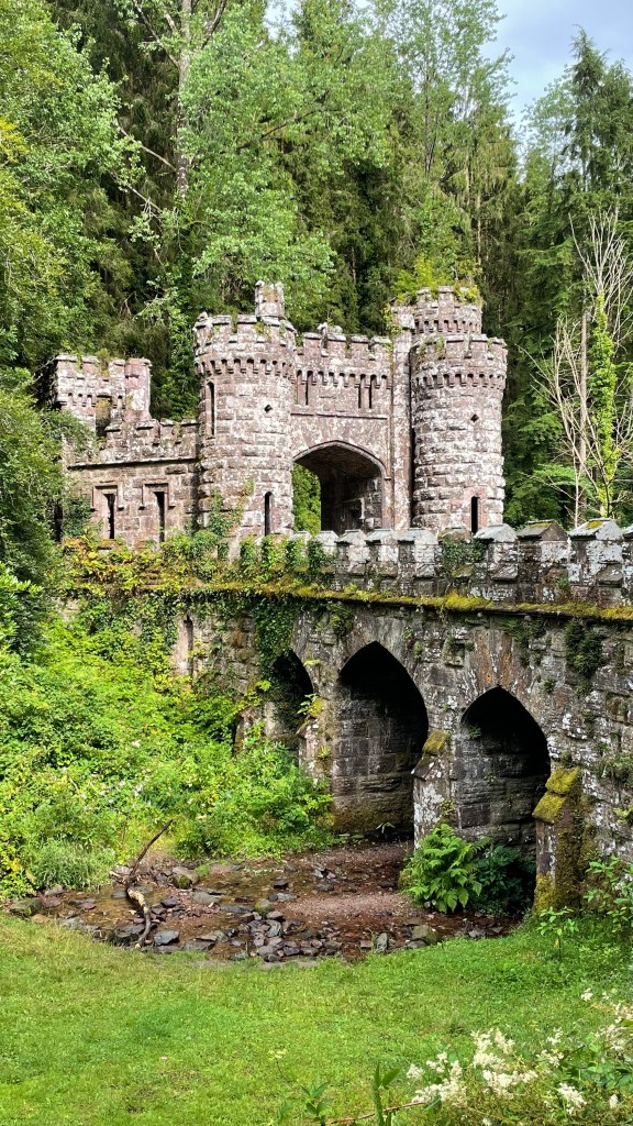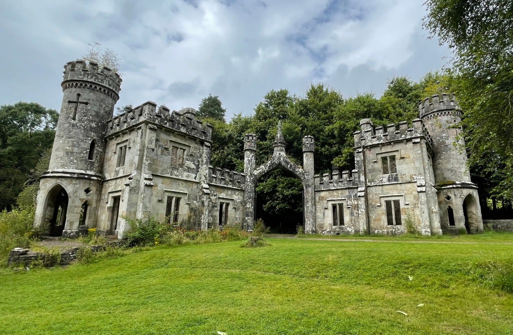 Next we head to the place that’s top of my list to visit – the towers at Ballysaggartmore. Commissioned around 1835 by some eegit with a jealous wife and more money than sense. The plans were drawn up for an extravagant mansion but after the fancy pants gate lodge and elaborate bridge and towers were started the money ran out… it was never finished. It’s a few kilometres from Lismore and an easy walk to get there and it is an amazing site to see. So bizarre to come upon among the trees….. but totally fabulous