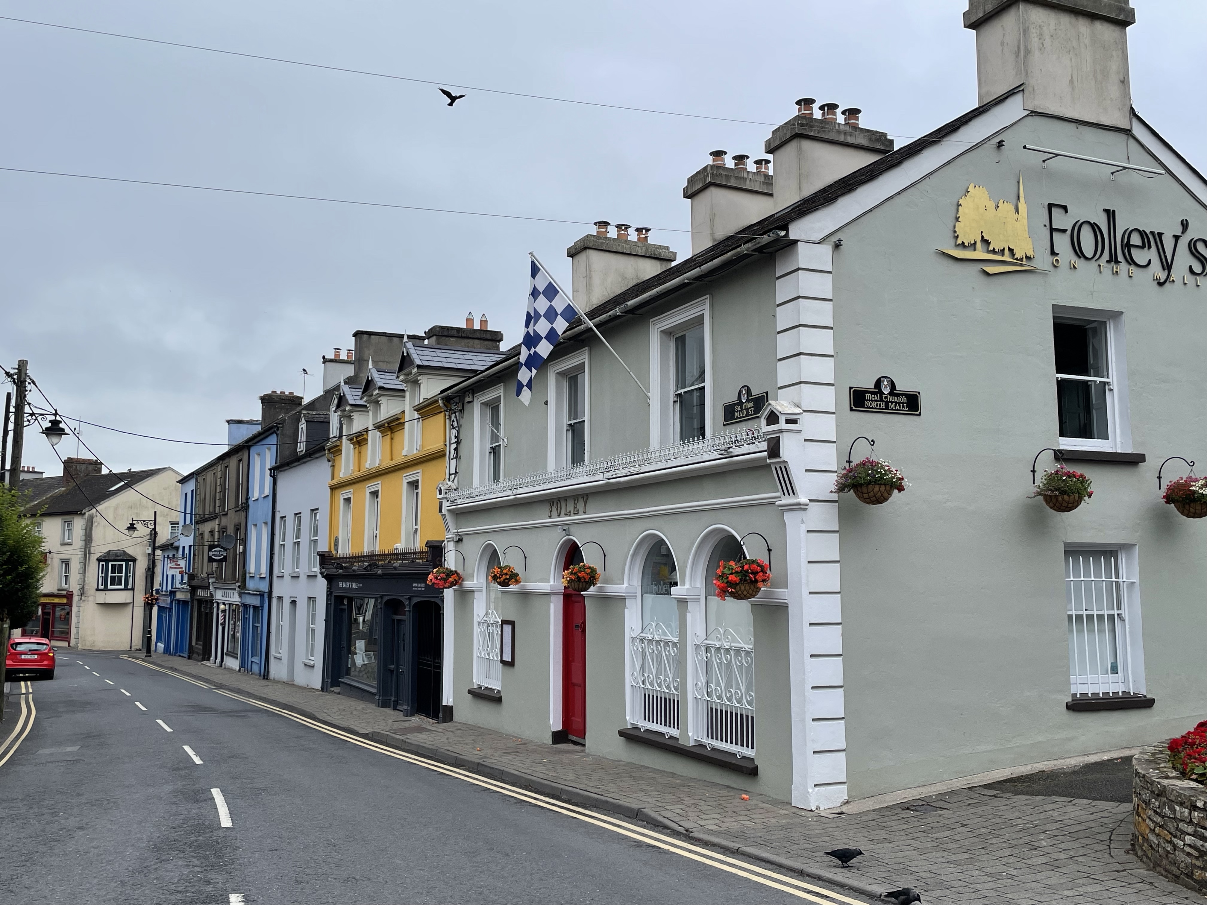 We loop back through town… it really is a cute town which I’m sure must have won the tidy towns a few times. Loads of hanging baskets and brightly painted houses.