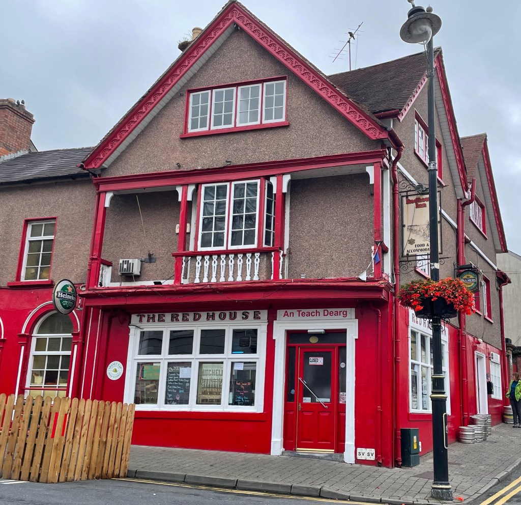 We’re enjoying being out so much we decide to check out the local pub – An Teach Dearg aka the Red House. There’s a handful of men at the bar and the proprietor directs us to a seat in the corner and brings us two fancy gin and tonics. There’s a woman with an eye seeing dog sitting opposite chatting loudly with a guy having a pint of Guinness. Next thing a woman bursts through the door and looking directly at Miriam and I asks where there’s a bank as she needs to get cash. Of course we have no idea but everyone tries to help with directions at the same time… the eye seeing dog lady is pointing right and the guy with her is pointing left and they’re all shouting directions. It’s chaos for a couple of minutes until the barman steps in and sorts her out, leaving us all in stitches!