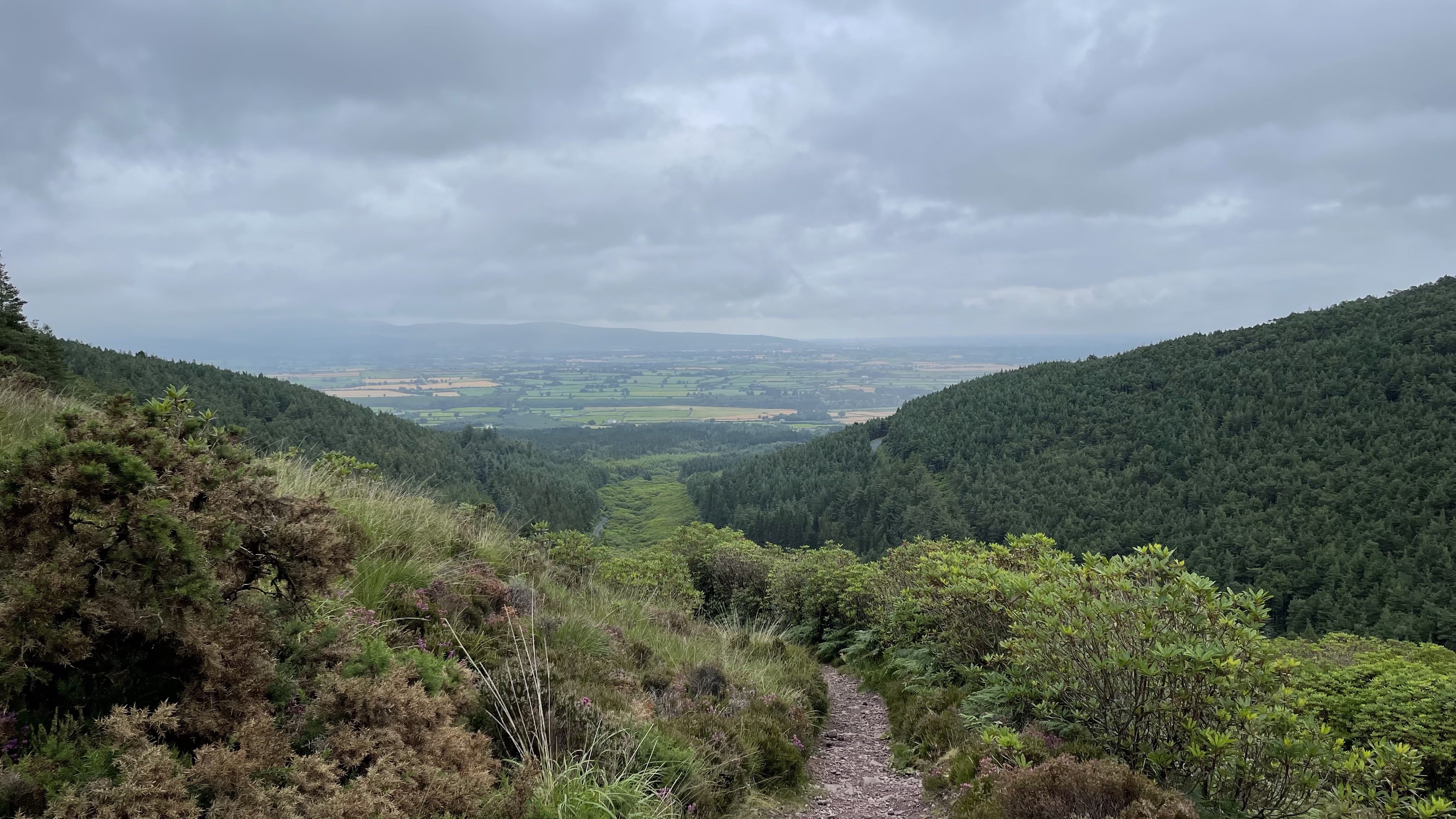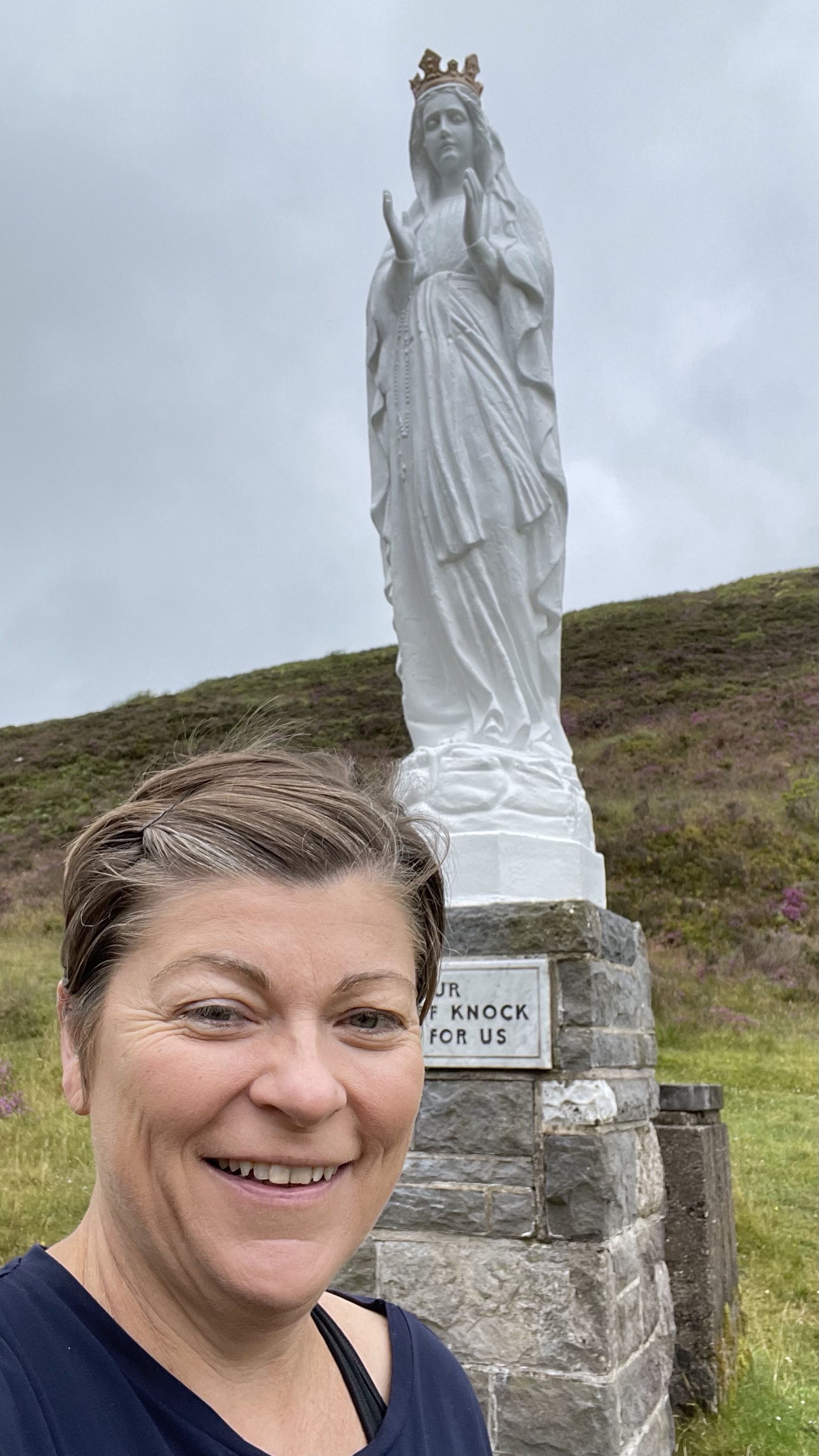 After a bit of studying we decide to head for the Vee pass. I’ve wanted to do this drive for a while. It’s a twisting road through farmland and forest and you come out at this V at the county border with sweeping views of both Waterford and Tipperary. At the vista there is a statue of our lady of knock