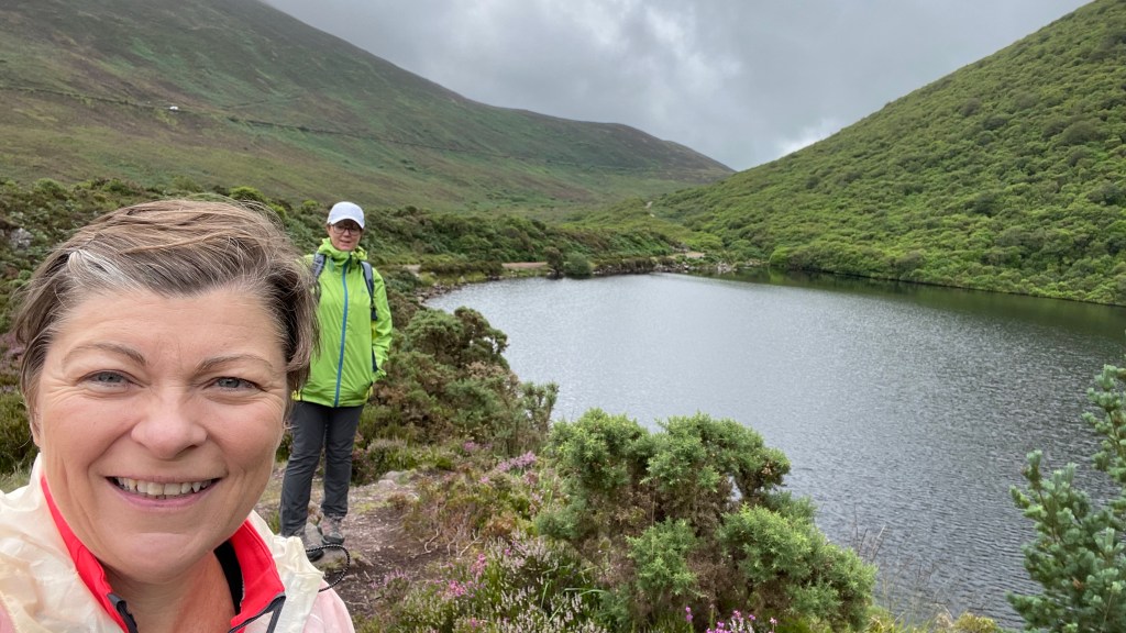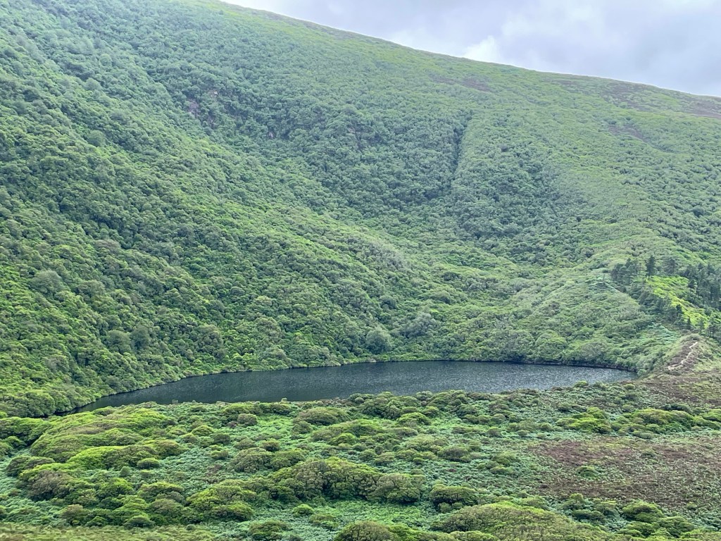 From the vista we take a path downward toward Bay lough. Even on this somewhat overcast day it is stunning. I can imagine how beautiful it looks when the sun is shining and the water is blue.