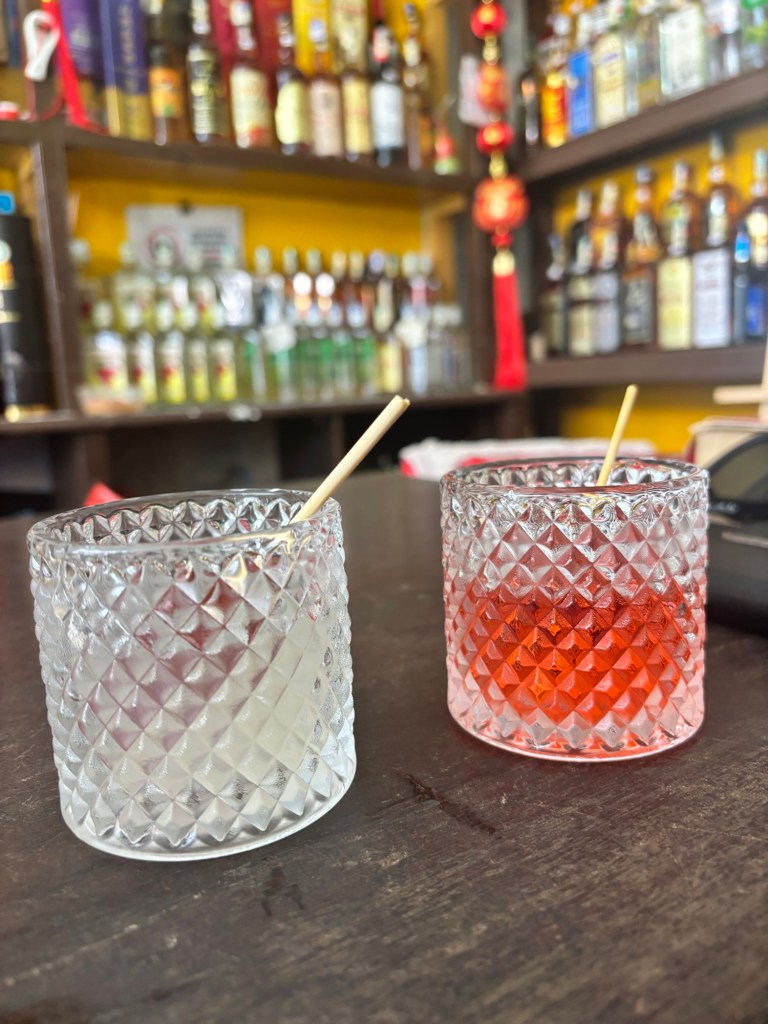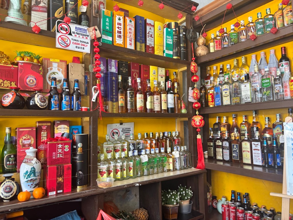 We need some water and a little rest so after this we head to the most famous bar in Melacca. It’s over 100 years old and it only opens in the afternoon so we have to go now! It’s called Sin Hiap Hin. It’s a very cool little spot, serving mostly Malaysian liquor and cocktails made by Auntie out the back!!
