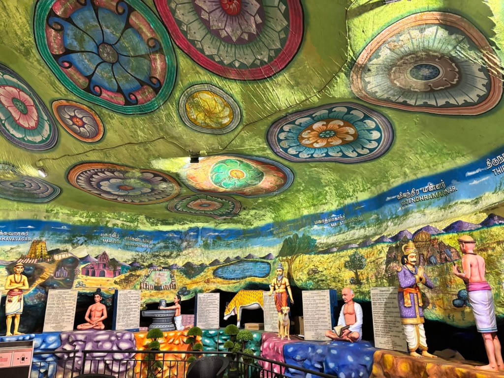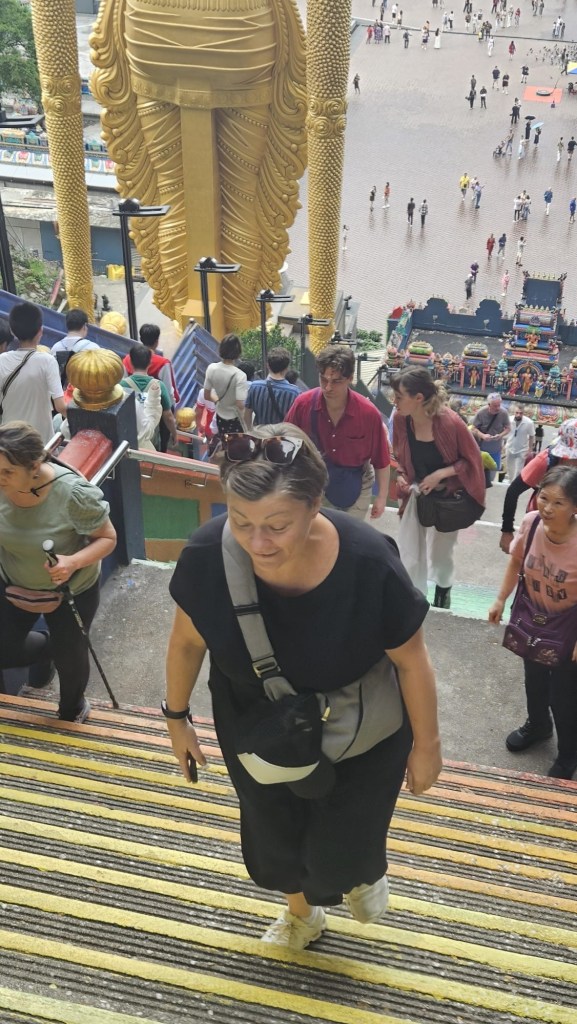 We climb the 272 colourful steps and enter the main cave which is impressive as caves go, but the temple part is quite basic. We spend a fair while – mainly because I’m looking at the monkeys climbing the cliff walls!