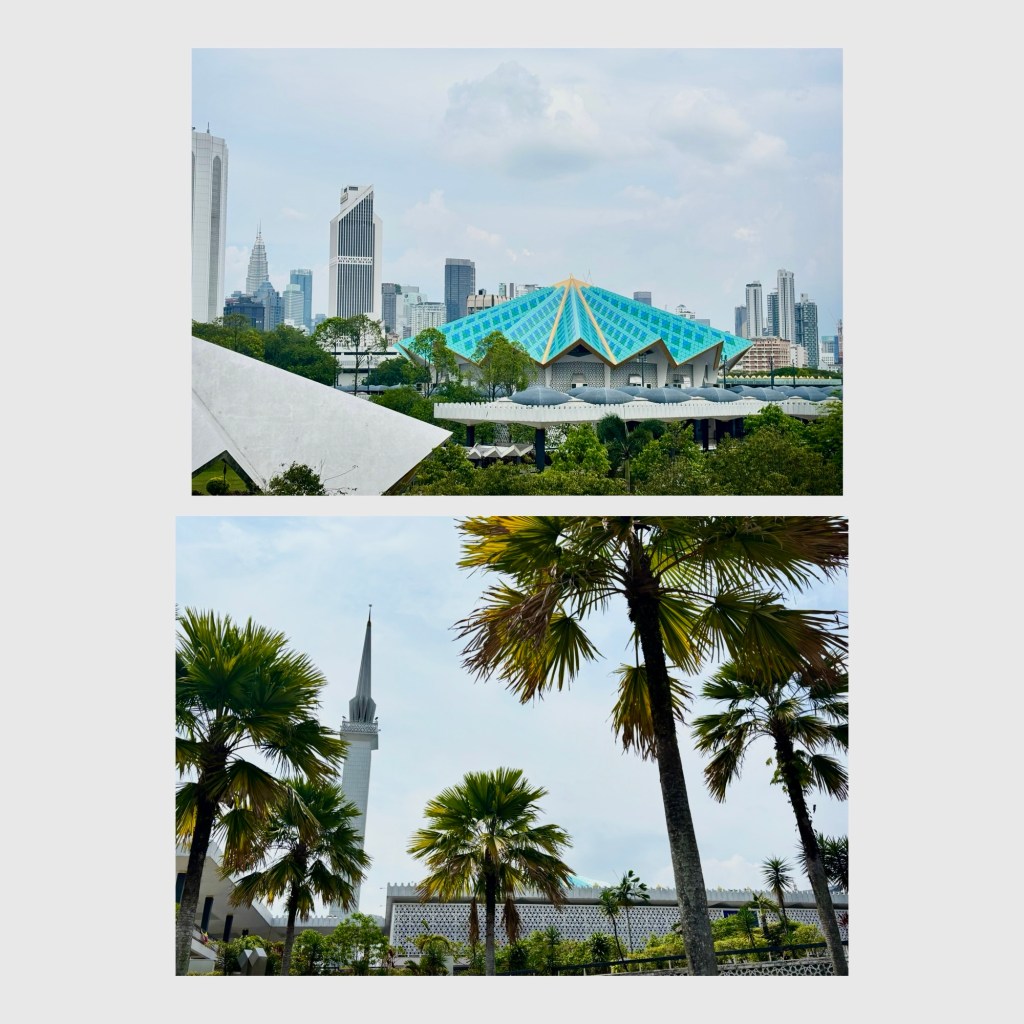 We go to the National Mosque – it’s giant – capacity to hold 15,000 people. We don’t go in although it does look like it allows visitors. Too many rules for us women!