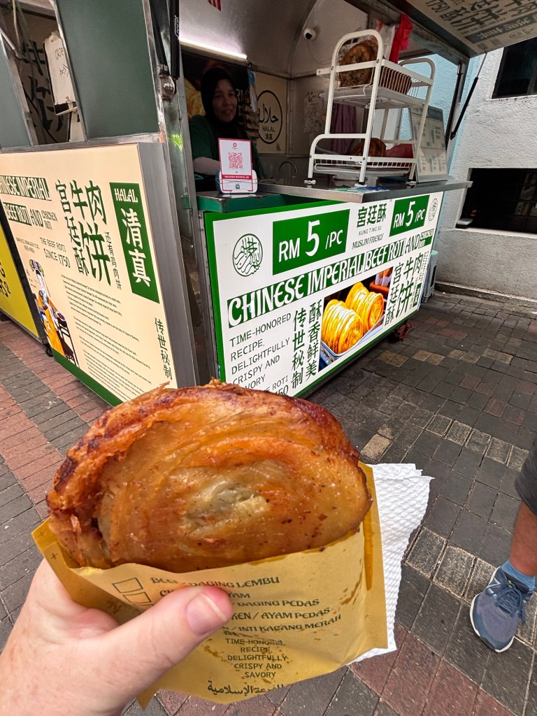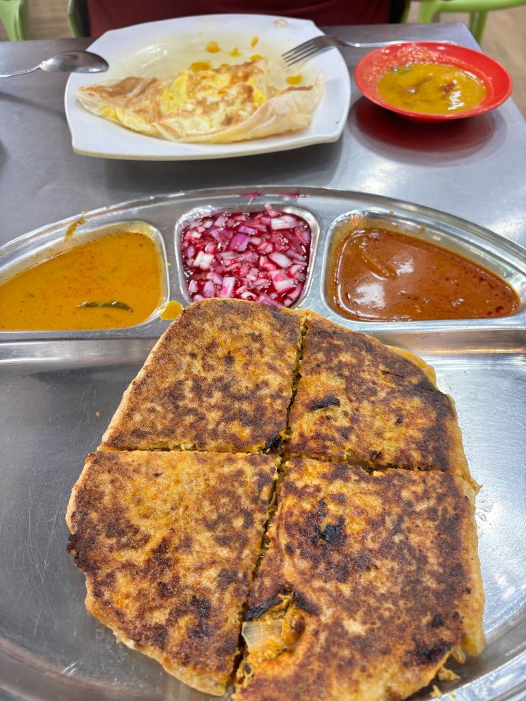 We’re nearly at the end of our month in Malaysia and today we fly back to KL (from Brunei) for our final 4 days. Our flight is a little delayed so it’s quite late by the time we arrive. Next morning we’re ready to investigate KL. We head out for breakfast and I have one of the last things on my list that I want to try – Murtabak, which is essentially a stuffed pancake. It’s very good.