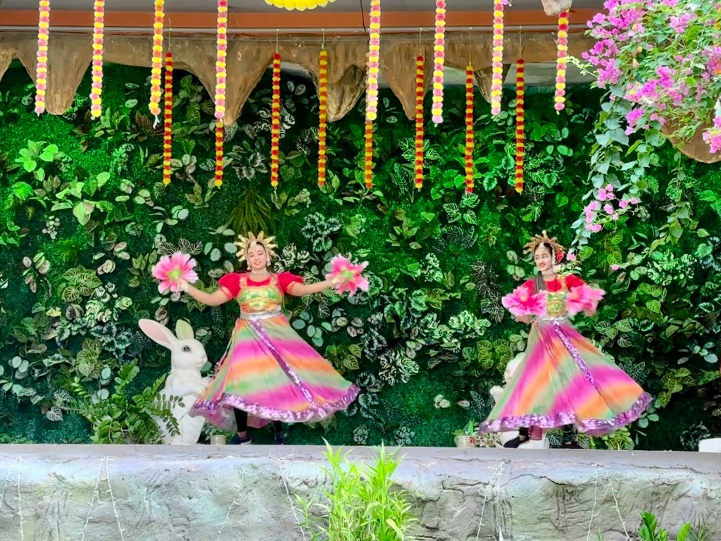 There are peacocks roaming around and some animals on display. We are also treated to a cultural show. A short one thankfully!!!