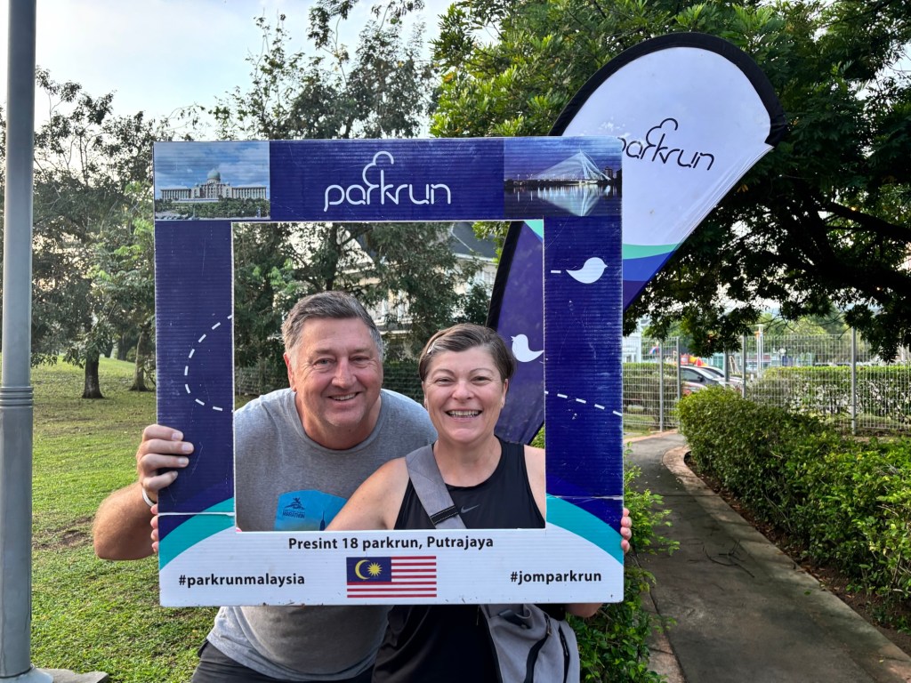 Saturday morning means Parkrun… yay!!! There’s just one Parkrun in Malaysia and it’s in Putrajaya which is about a 40 minute drive from KL but we are committed! We get up at 6:15am and taxi in the dark, but by the time we arrive, it’s light and we are ready to go. It’s a small number of people but they are all really friendly.