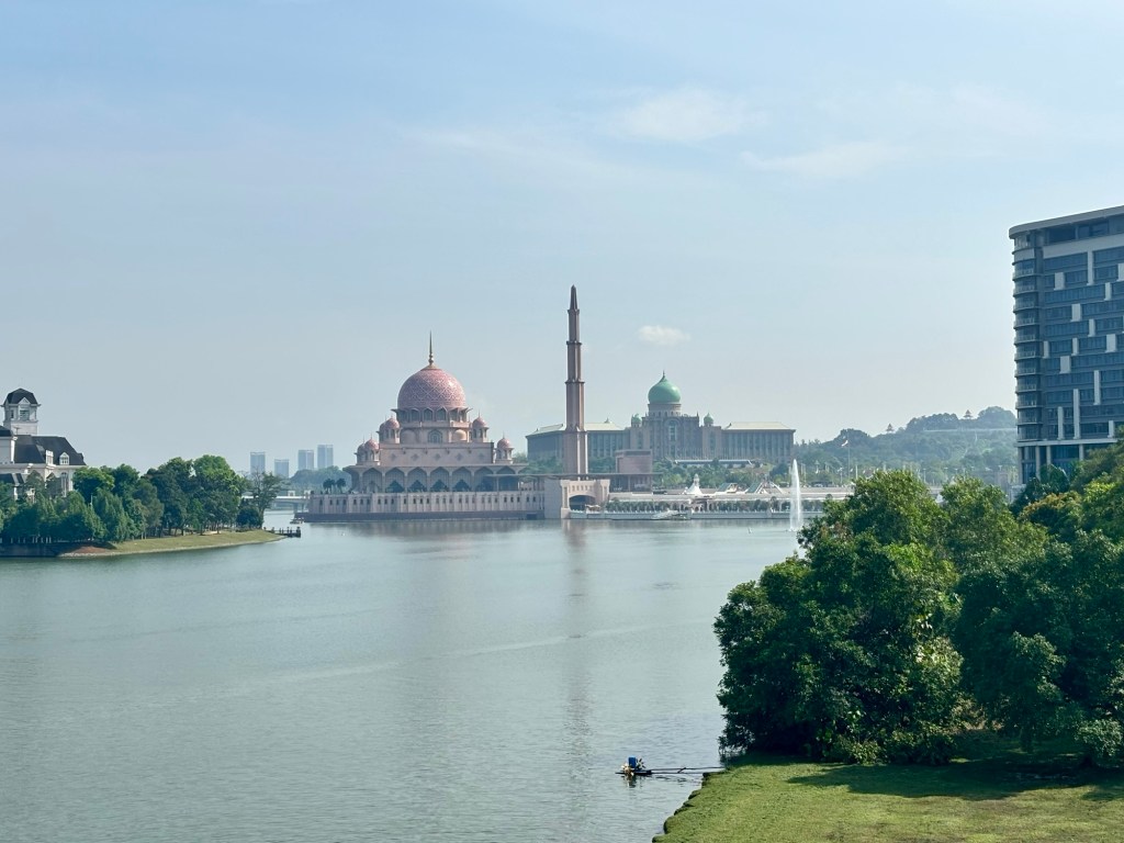We get a great view back to Putra mosque, or the Pink Mosque – and the large Perdana Putra, which serves as the Prime Minister’s Office complex. We had close up views of these this morning as we ran Parkrun.