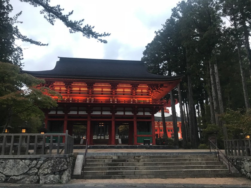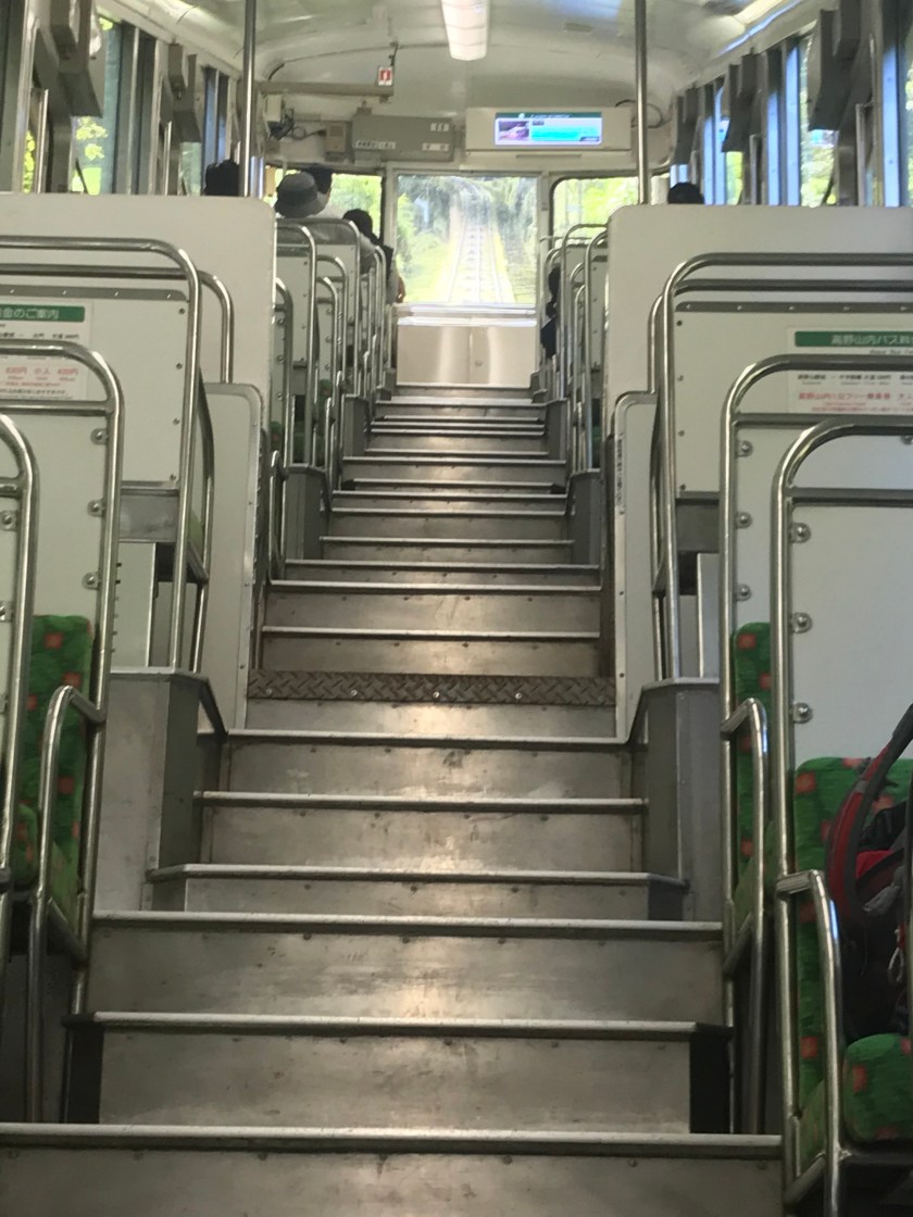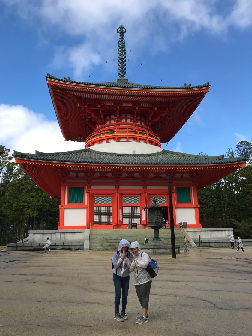 Today we embark on a “planes, trains and automobiles” type of journey to get to the holy mountaintop Koya-san or Mount Koya. This is the centre of Shingon Buddhism and a place of pilgrimage for the Japanese. We set off early and don’t have any hiccups with the taxi, Shinkansen, regular train, subway, bus and cable car… the Japanese really are that efficient. The view of the mountains from the train is impressive as we continue to climb. When we disembark our last train at Gokurakubashi, we take a cable car, which we’re assured is one of the steepest in the world, shooting up nearly 900 meters.