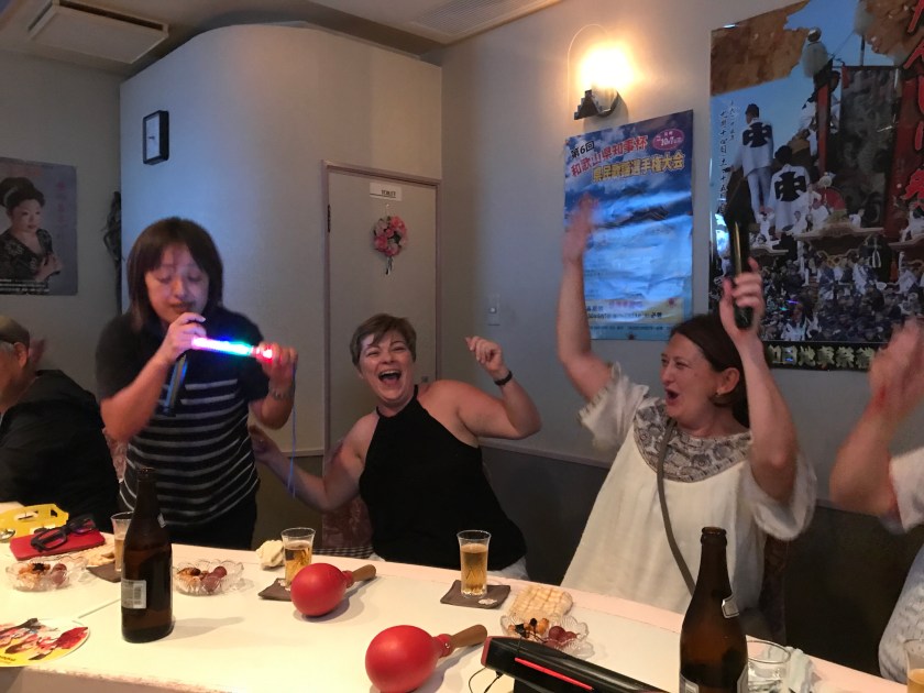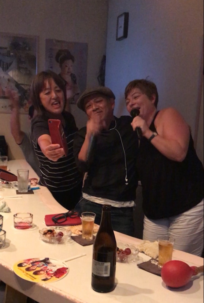 This is by far the most authentic and fun karaoke I’ve ever been at. It is hilarious. All three if us sing and also do duets with the locals. The couple on our left sing some very heartfelt Japanese songs and the other three do a range of English songs that we all join in.