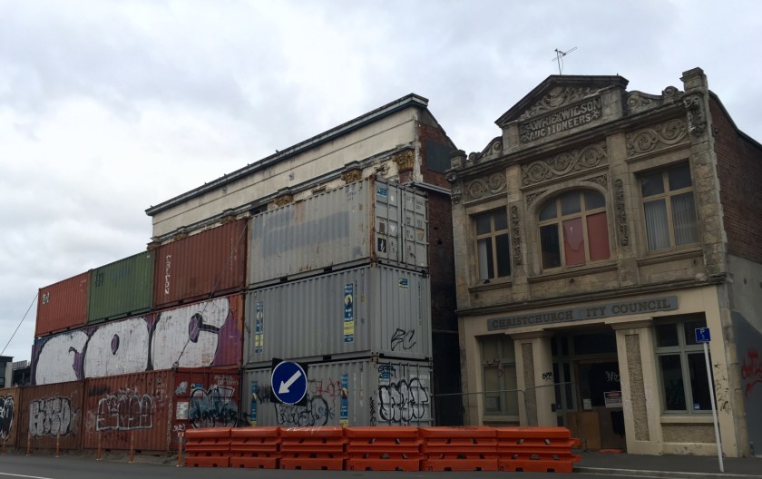 From there I walk down Cashel Street [by the way most of the street names and places are Irish or Scottish, my hotel is on Tuam St] which is the main shopping street toward the container mall. Unfortunately after walking around in circles, somewhat confused, I’m told that it closed two weeks ago and all the containers have been removed. Shame… although you can still see how they’ve used these shipping containers all over the city: