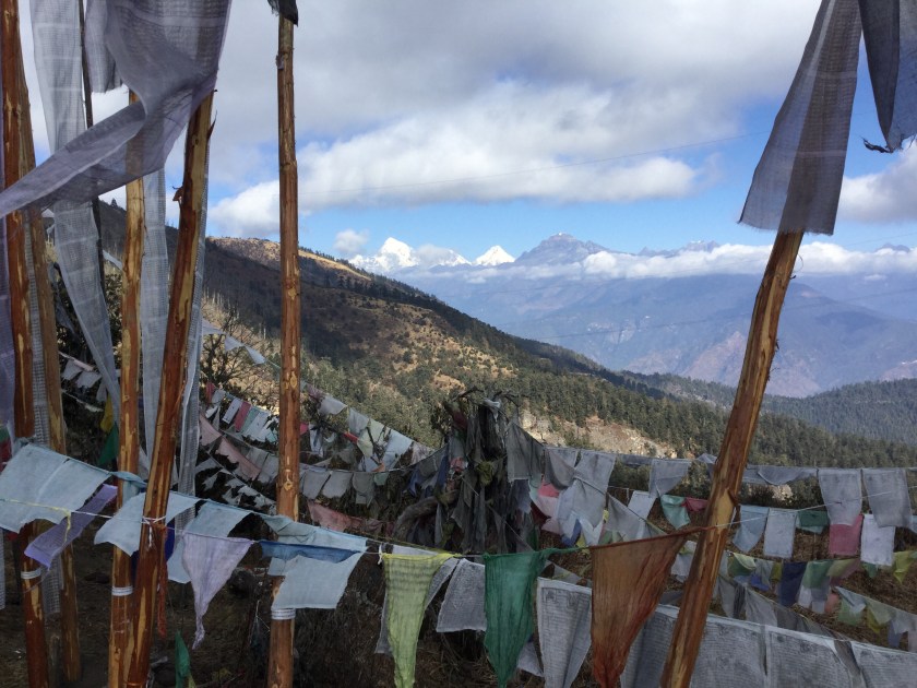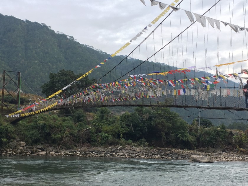 After the hike we crossed a very long suspension bridge with lots of prayer flags. It’s apparently the longest in the country and was fairly shaky especially when a load of school kids were purposely rocking it: