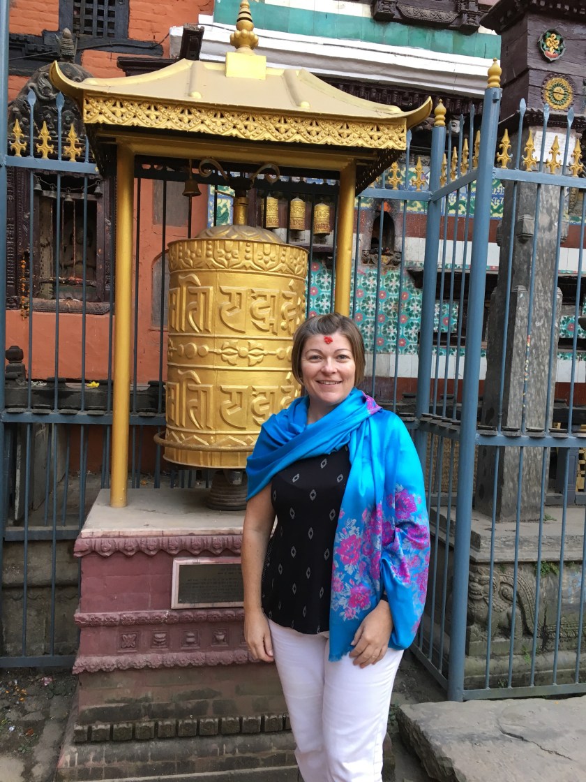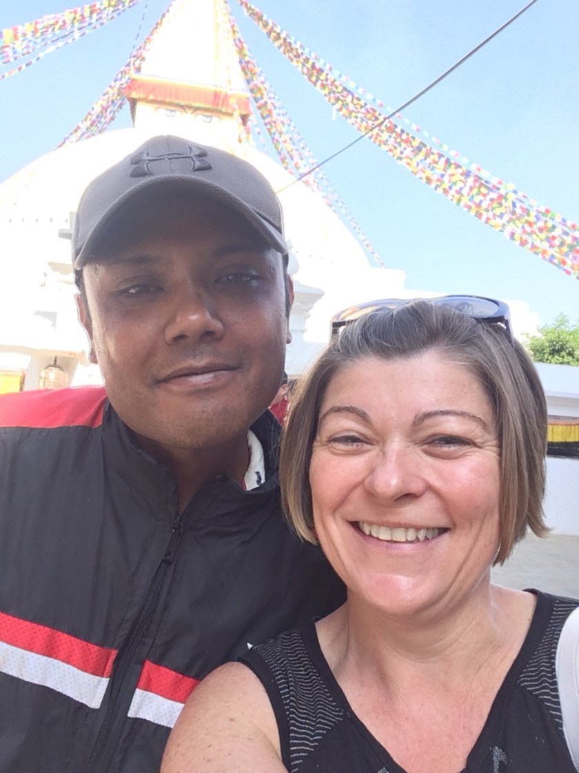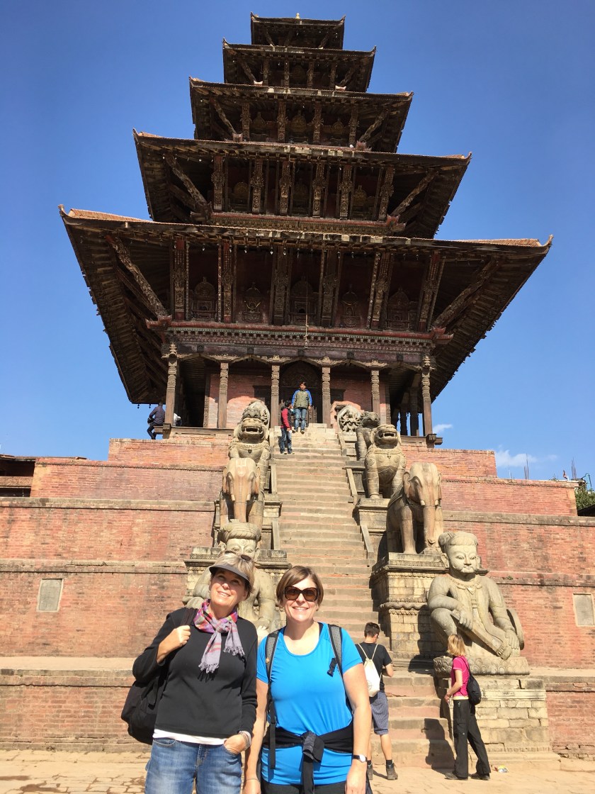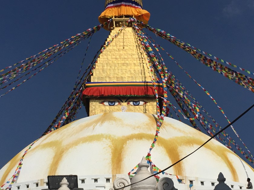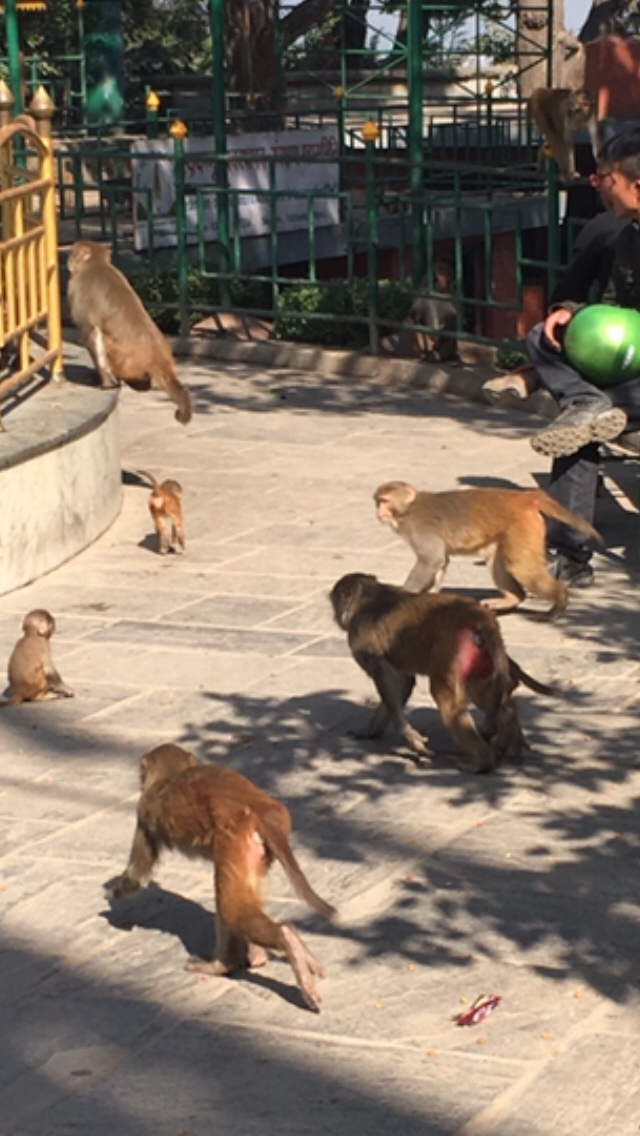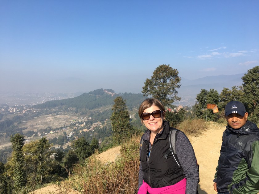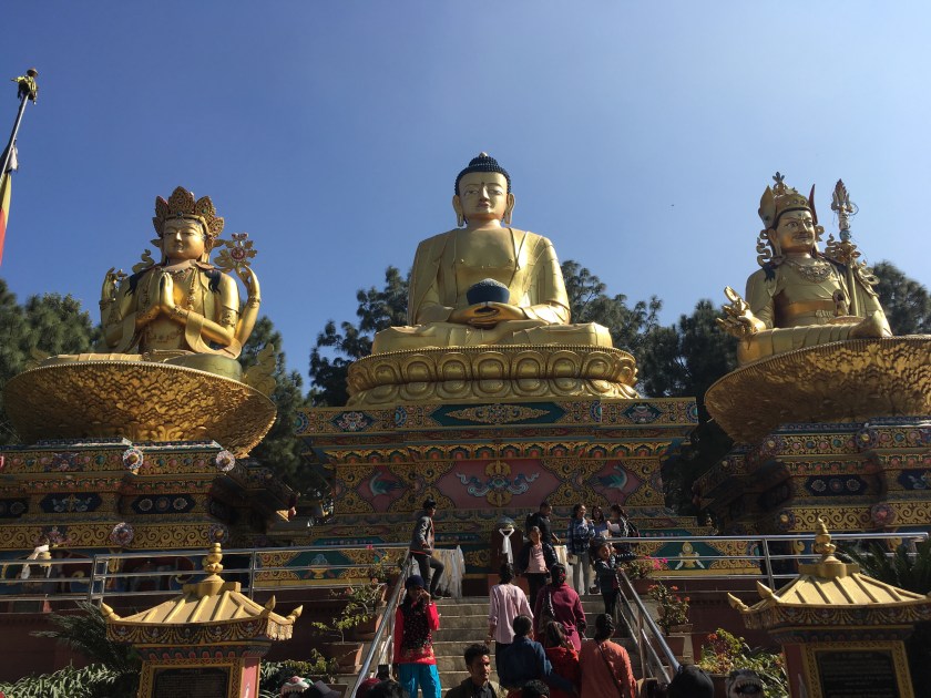 This stupa is full of statues of protectors and there were three different levels to climb up. The top was an open air level with great views of the valley: