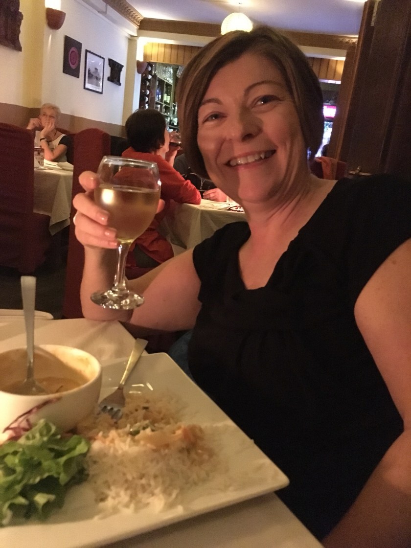 That night we had a taste of the local night life as our guide took a few of us to Karaoke in a bar in the little town. It was hysterical and a great insight into the “party scene”!!! We had a few bottles of beer and yes of course I sang.. yes a few times.. mostly dueting with my fellow tour buddies and performing from our seats.. (no need to get up on stage here!). It was great fun and we gave the locals a giggle. There were English, Bollywood and local Bhutanese songs. For our grand finale we did the macarena which seemed like a good idea until we realised none of us knew how to sing all the words except “hey macarena”.. I moved swiftly away from the microphone and left our tour guide and one of the Canadian lads to sing while myself and another lad danced the moves (eh tried!!) on either side.. it was a total train wreck but very funny. We ended the night on stage dancing with some locals and even got a photo with them.