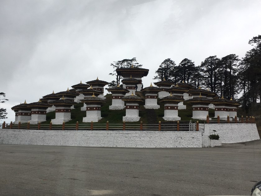 There are 108 memorial chortens or stupas that were built by the queen mother and we walked around them all: