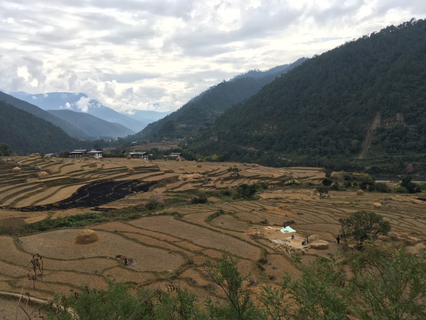 We hiked across rice fields where local people were working and upward to the Khamsum Yueley Namgyal chorten (or stupa).