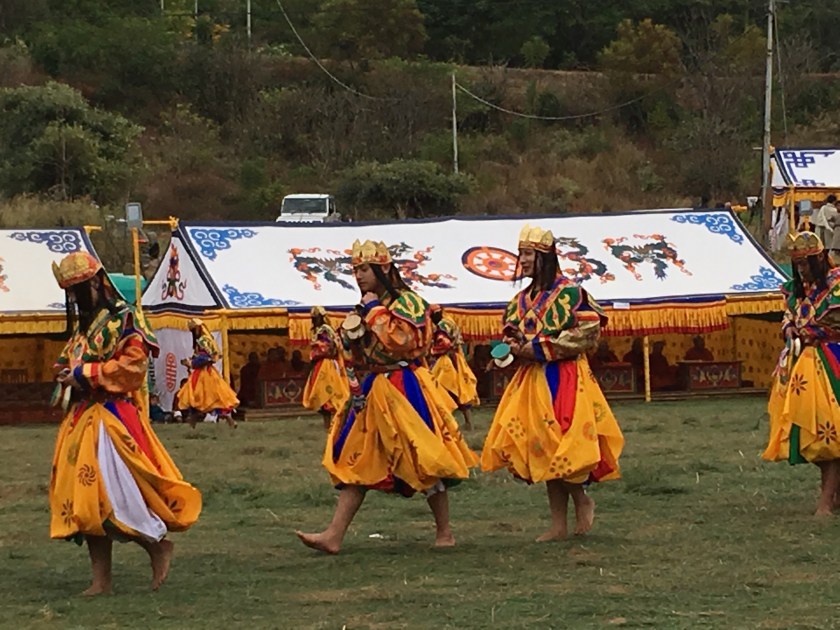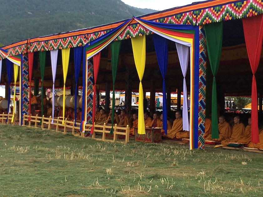 When we’d driven through the town earlier we’d noticed a large prayer festival on in the local temple. One of the guys on the trip asked our guide Kinlay if it was possible to visit and sure enough without much hesitation it was added to our itinerary. The grounds were packed and there were hundreds of people including regular folks and monks praying and chanting. Kinlay told us that it was a 3 day festival to pray for world peace and they were going on all over the country. We were ushered in like VIPs and given seats in a tent right at the front of the action. After watching the monks praying there was a dance ceremony were boys wore the traditional masks and performed a ceremonial dance. It was fascinating to watch.