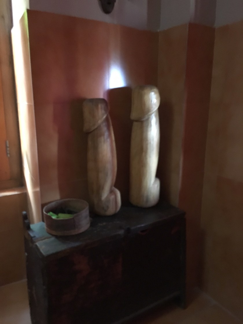 According to the story, Lama Drukpa was a bit of a ladies man and ran riot with women wherever he went. He allegedly subdued a demoness with his “magic thunderbolt of wisdom” and remained infamous ever since. The phallus is supposed to ward off demons and so it’s very common to see it drawn on people’s houses and penis statues everywhere!!!