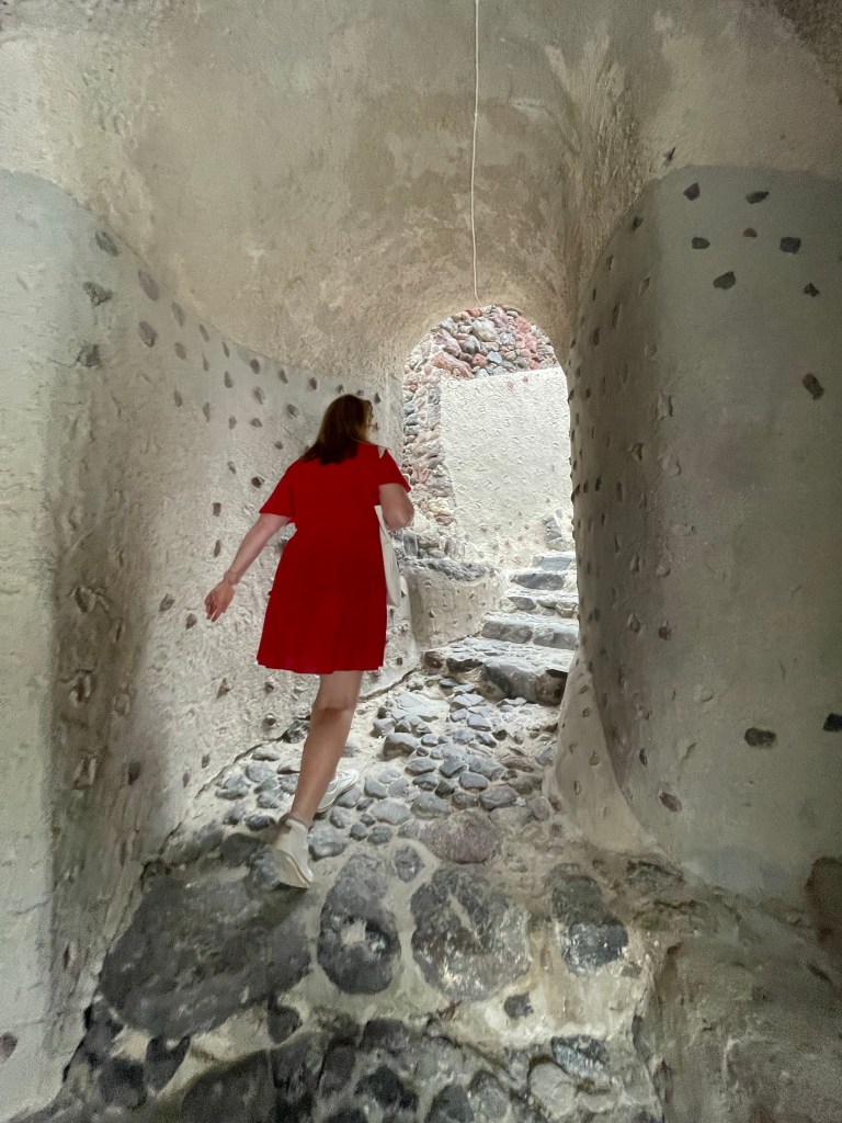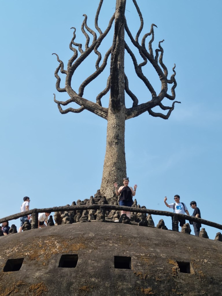 I go in to take a look and it’s a weird circular cave with Buddhas in the centre. There are narrow steps that I climb to get to the top where there are many signs to say it’s slippy.. in fairness it’s a bit of a death trap. Shane takes my photo from below and I’m outta there!