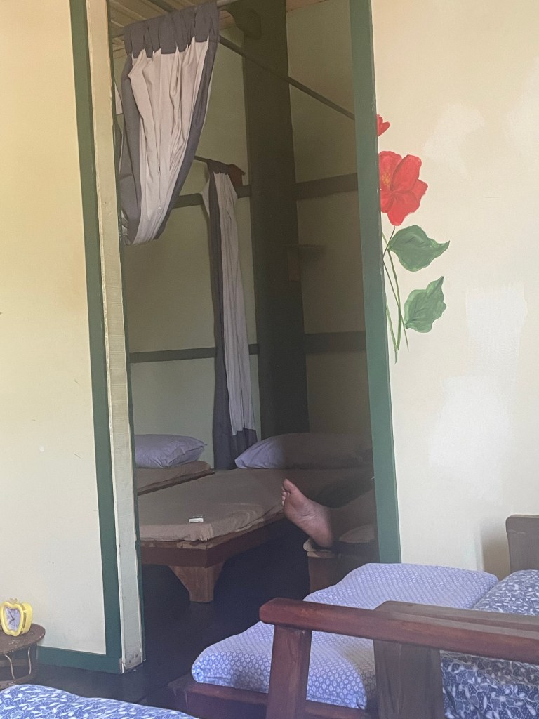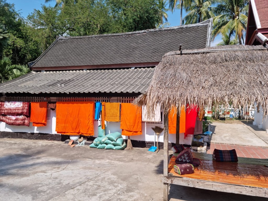 It’s time to try a traditional Laos massage. When I arrive up to the massage parlour a young man comes outside and asks me what I’m looking for. He explains the Laos massage is stronger than a Thai massage (😳) and that it’s 80,000 Kip for one hour (that’s less than €5). He also mentions this isn’t his shop, he’s just a customer but he speaks English! I swap my flip flops for their indoor flip flops which are a giant men’s size and in I go. From here on in there is no common understanding of language… I sit down in a chair and a young girl brings a basin and washes my feet. Then she motions for me to follow her upstairs to a large room with 3 thin mattresses on the ground. The room is empty so she points to the middle mattress and hands me a pair of shorts and a T-shirt. [I’m pretty sure the shorts are men’s, most likely for the more ‘over-sized’ westerners!!].