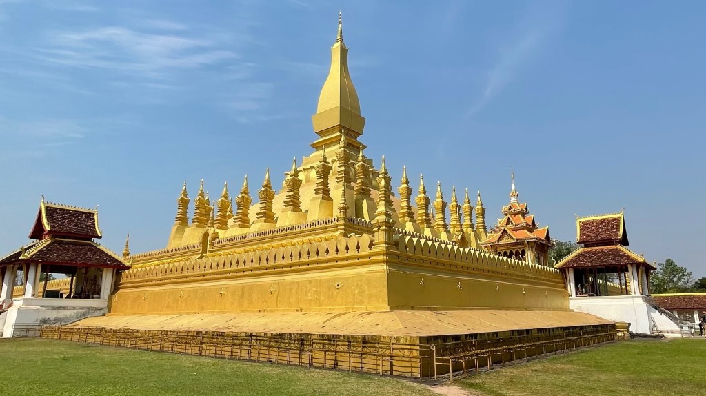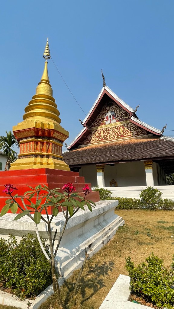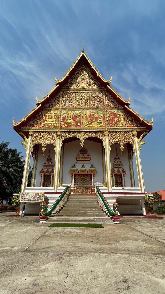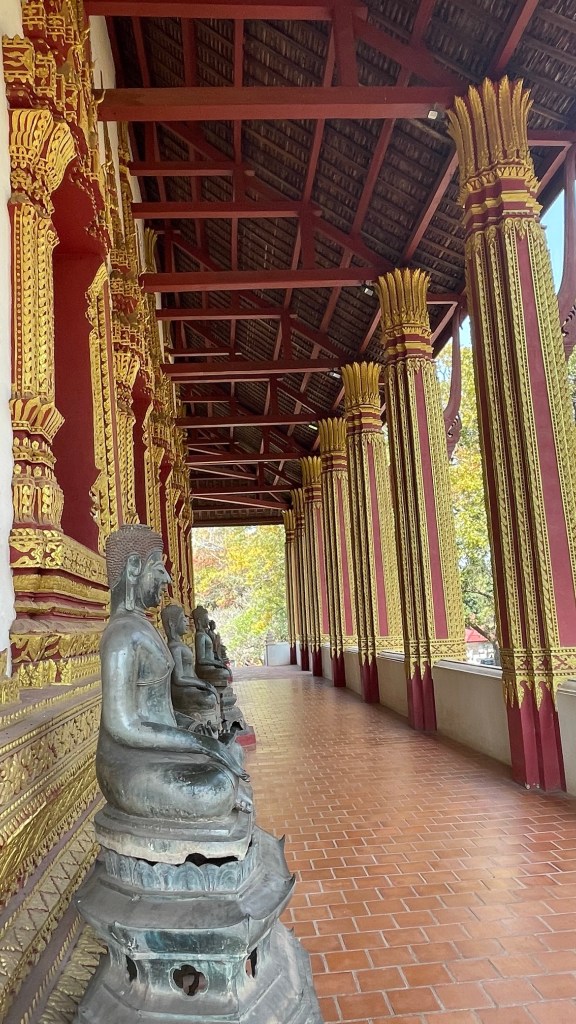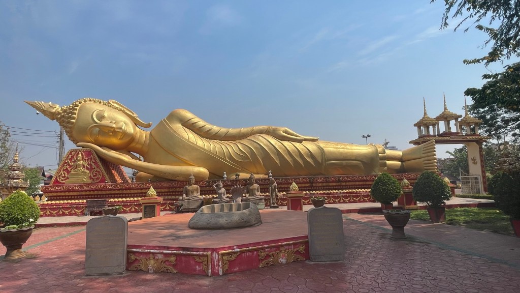 Google told us that another temple (Pha That Luang) is closed today but the driver says it’s open and he can take us. This has a beautiful golden stupa which is the symbol of the Lao nation and appears on their money. (I checked and it’s on all the notes)