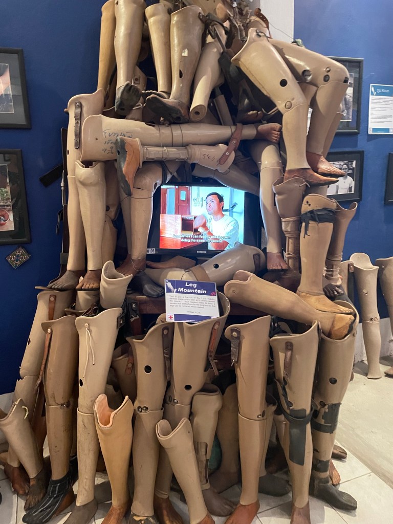 We visit the COPE visitor centre. COPE stands for Cooperative Orthotic & Prosthetic Enterprise. COPE is an NGO supporting those injured from unexploded bombs leftover from the massive tonnage of bombs dropped by the US on Laos from 1964 to 1973. The bombs were mostly cluster bombs which are just terrifying when you see how many small explosives they turn into and how much damage they can do. I wasn’t aware of what they call the “secret war” on Laos so I’ll need to do a bit of research on that later.