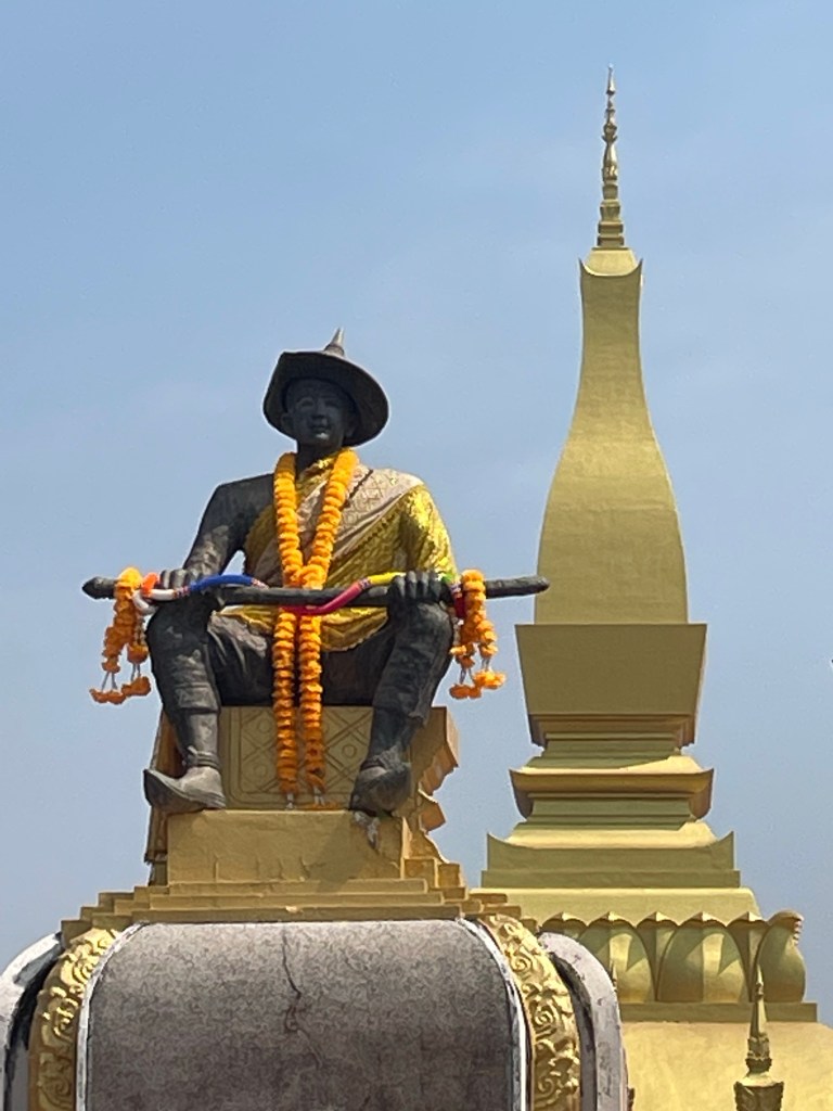 The most important Buddha statue that was here until it was stolen by the Siamese in 1779 is the Emerald Buddha. The Emerald Buddha is on display in Bangkok and most people go to see it when they visit. Nobody mentions that it belongs to the Laos people.