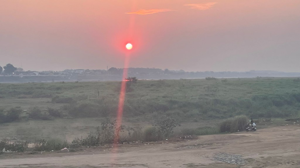 …….then walk around the far side til we get to the other bamboo bridge and cross back. We arrive to the edge of he Mekong river just in time to see an amazing red sunset but not with enough time to photograph it… by the time we get into a good position it’s gone… bugger! But it’s captured in my minds eye 😁