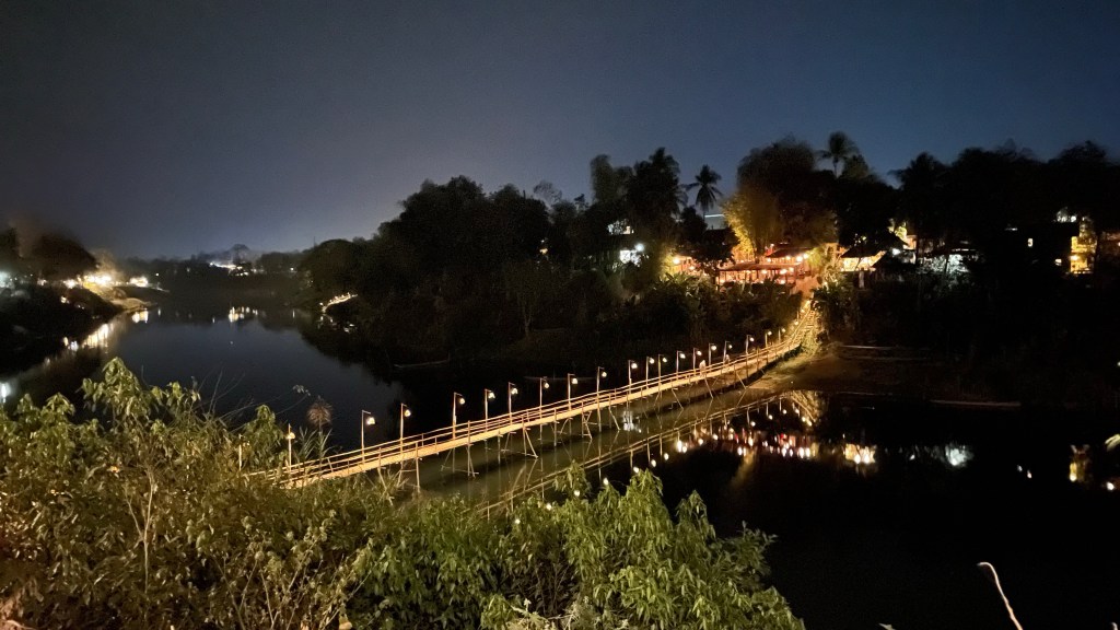 We’re on the move again… I can tell it’s going to be a high step count day! On the west of the peninsula is the Mekong river and to the east is the Nam Khan river. There are a couple of bamboo bridges that cross the Nam Khan. They are built every year after the rainy season, in November and taken down every June. We will definitely be crossing both, just not today.