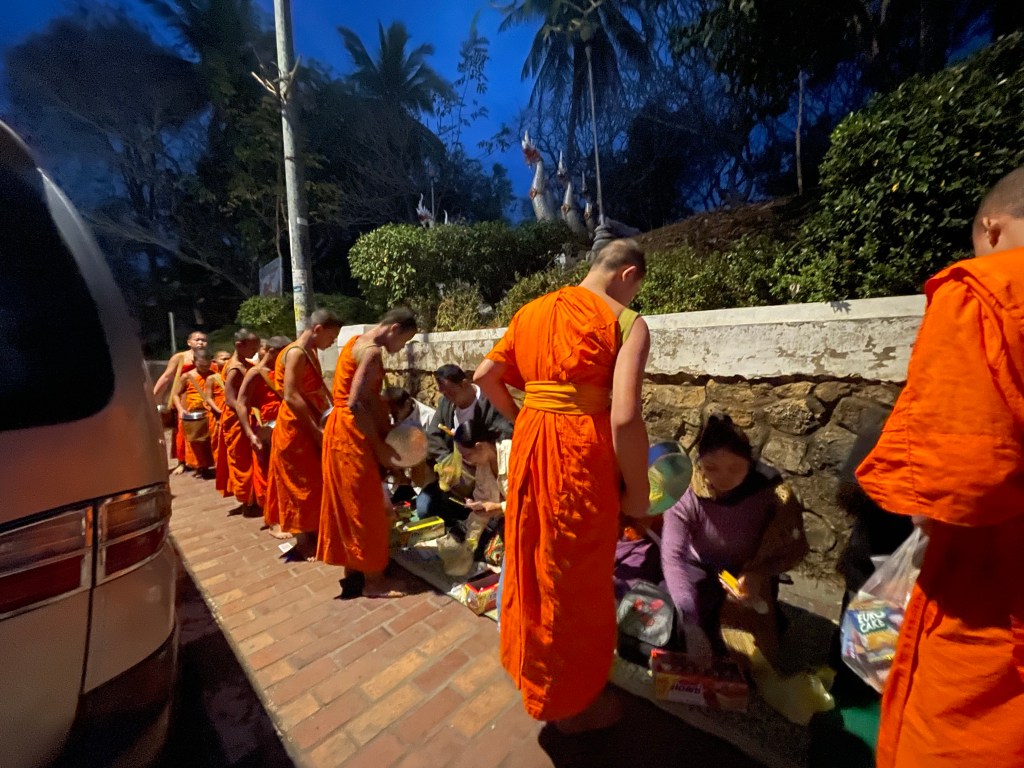 Day 4: We get up at 5am to see the monks walk from their monasteries to Coll alms. The daily ritual is called Tak Bat (morning alms) and involves people placing food and personal care items into the alms bowls of the passing monks. This tradition has gone on for centuries but from what we observed, I think this has lost some (or dare I say most) of it’s true meaning. I accept that I (as a tourist) am part of the reason for that, but it feels like an event for the tourists.