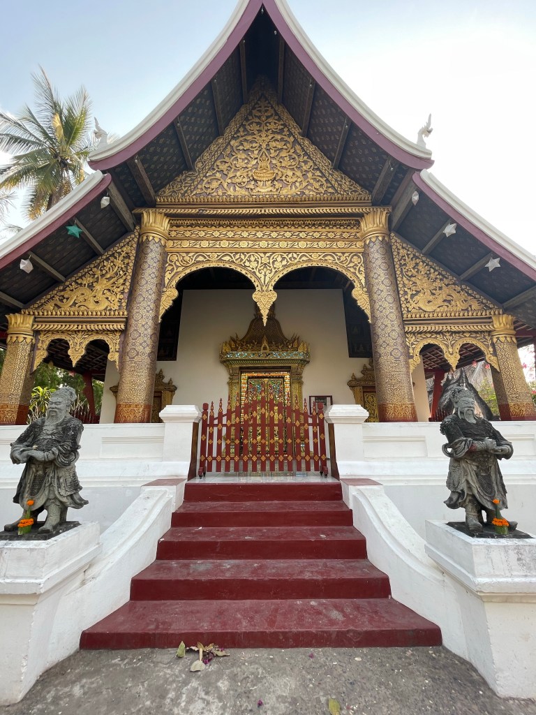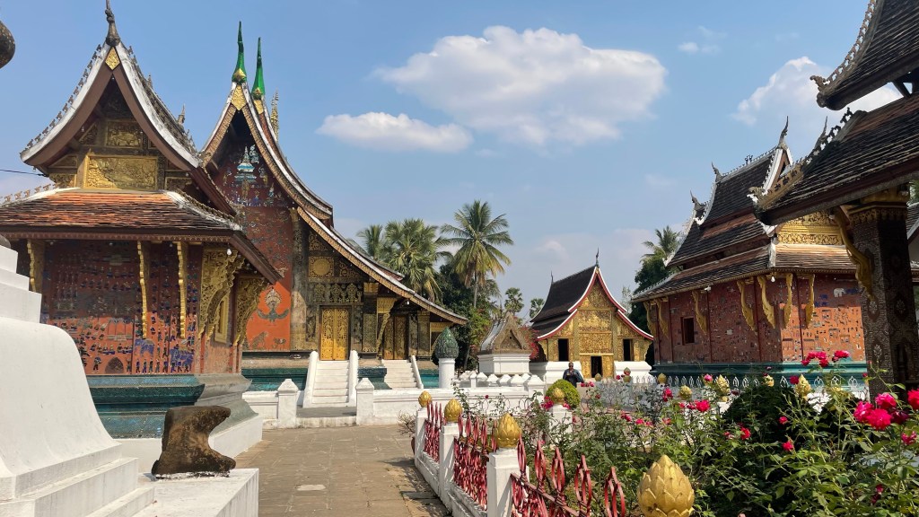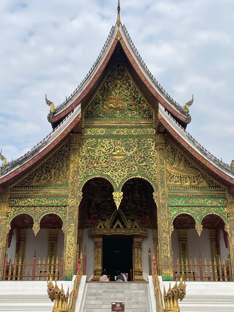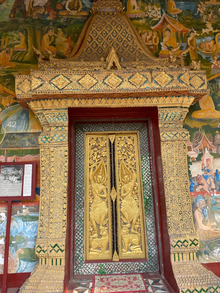 We stumble upon Wat Xiengthong which is on my list to see. The guidebook tells me it’s one of the most important wats in town (mind you it seems to say that about nearly all of them for some reason or other!). It was built in the 16th century so it’s one of the oldest and considered one of the most beautiful in LP. The complex is indeed beautiful…