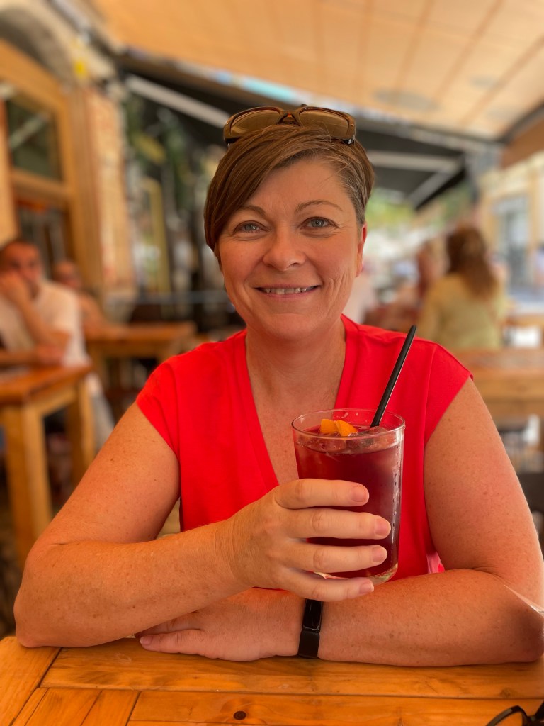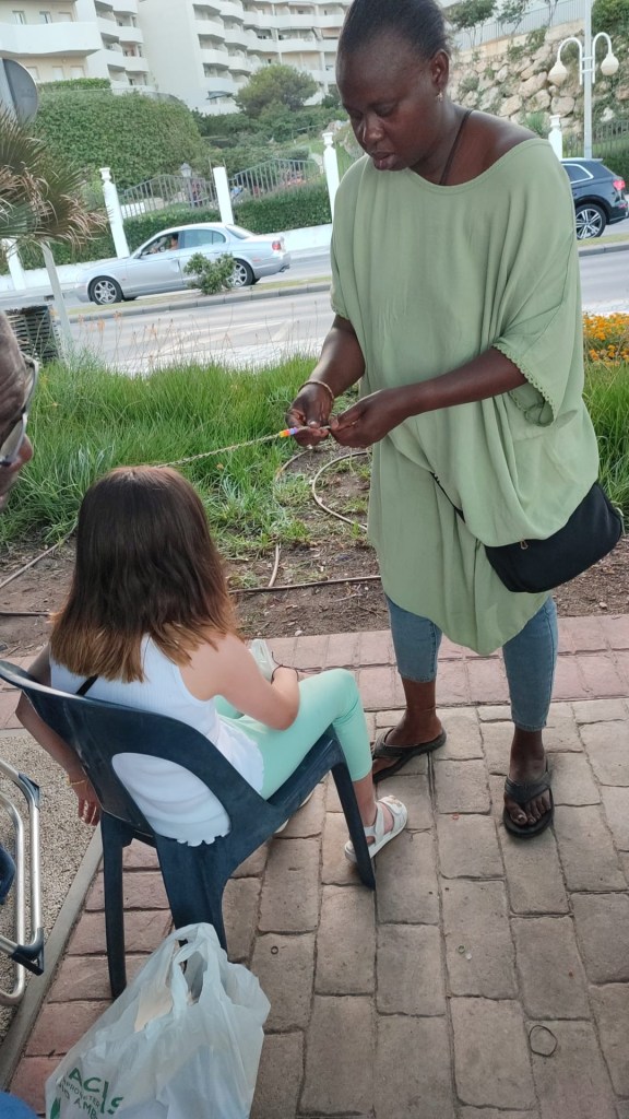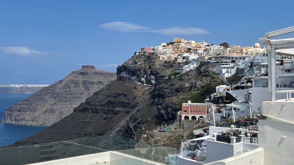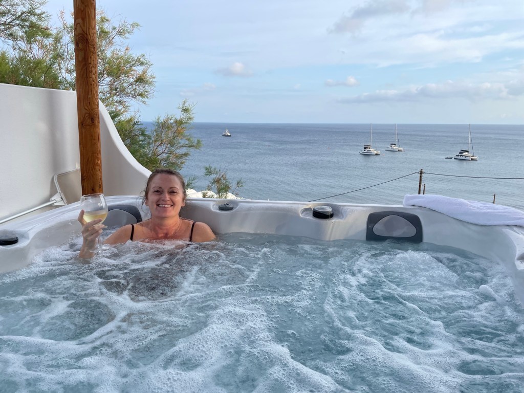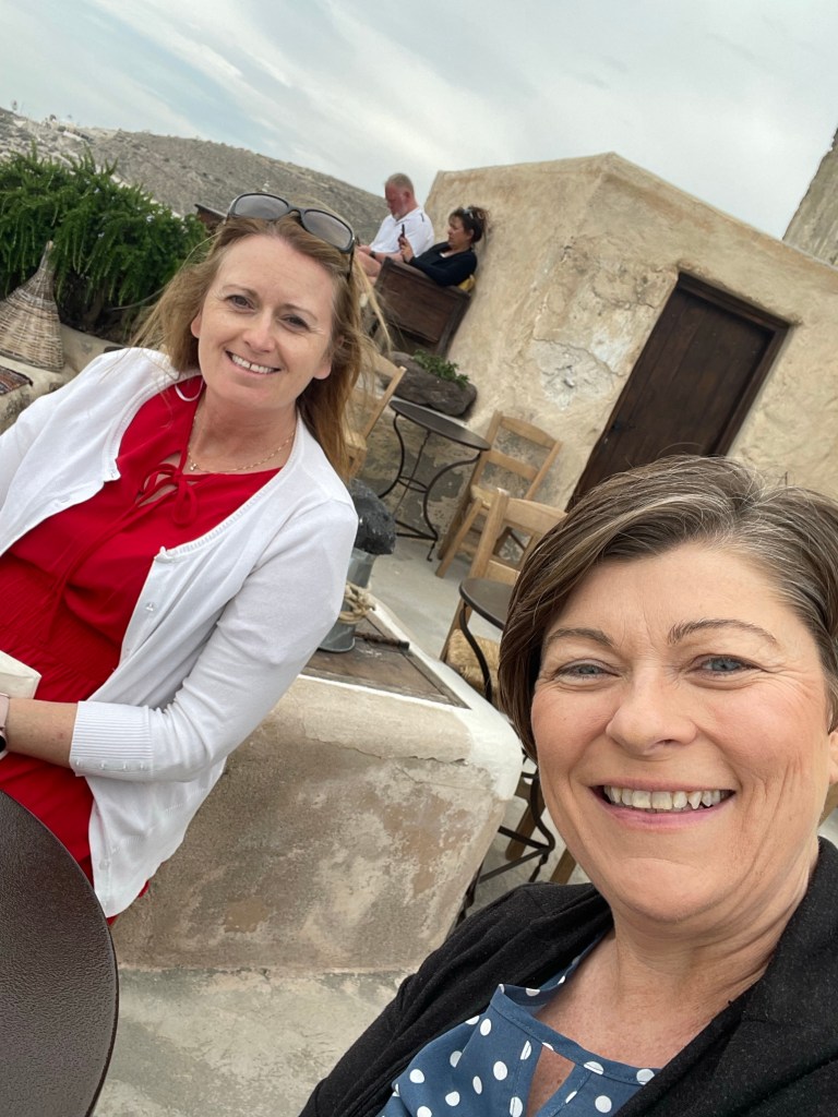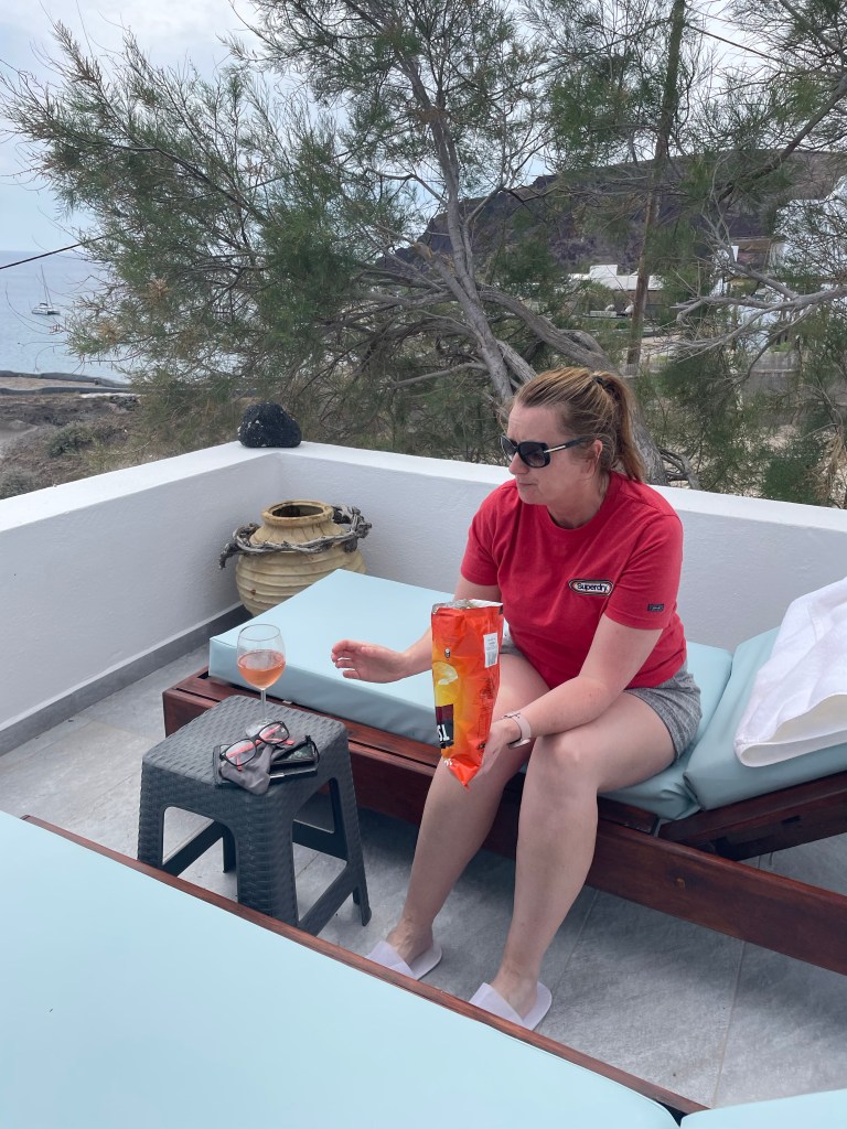 We take advantage of our beautiful hotel and have a couple of hours on the balcony this evening chatting and tasting the firewater and ordering wine (well that’s just me!) from the bar downstairs! It’s a nice temperature (I mean still seriously roasting for us Irish) but I’m coping… just about!!