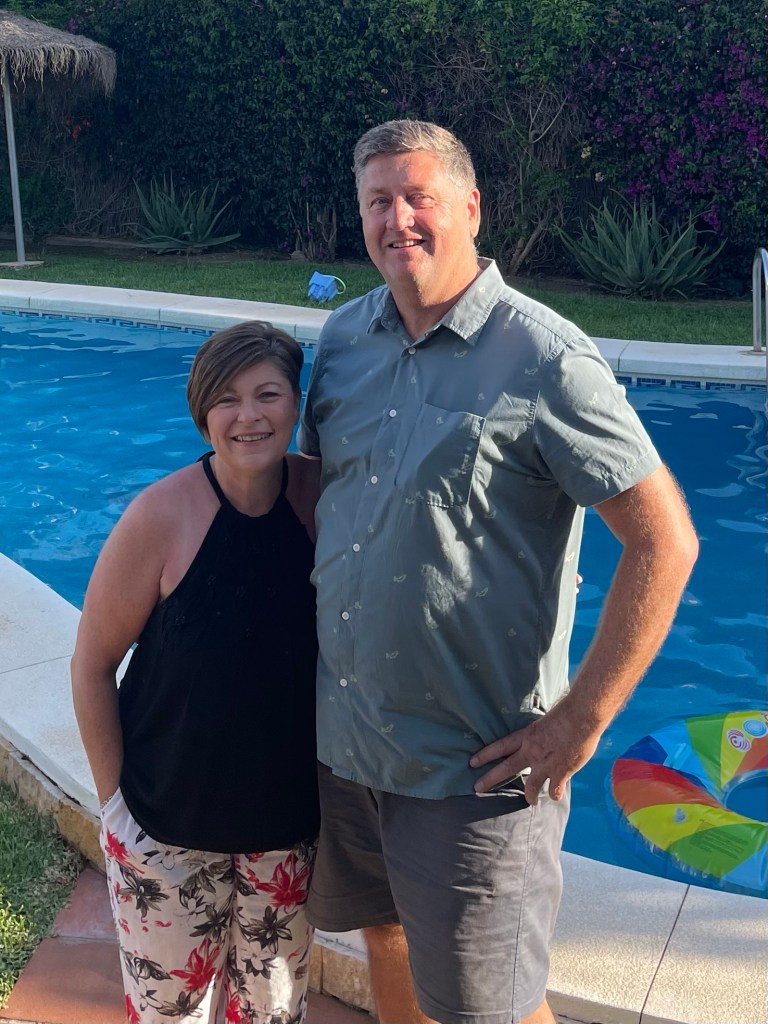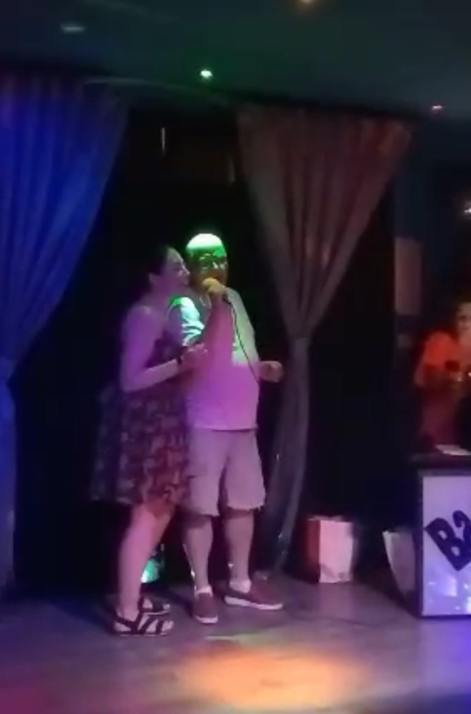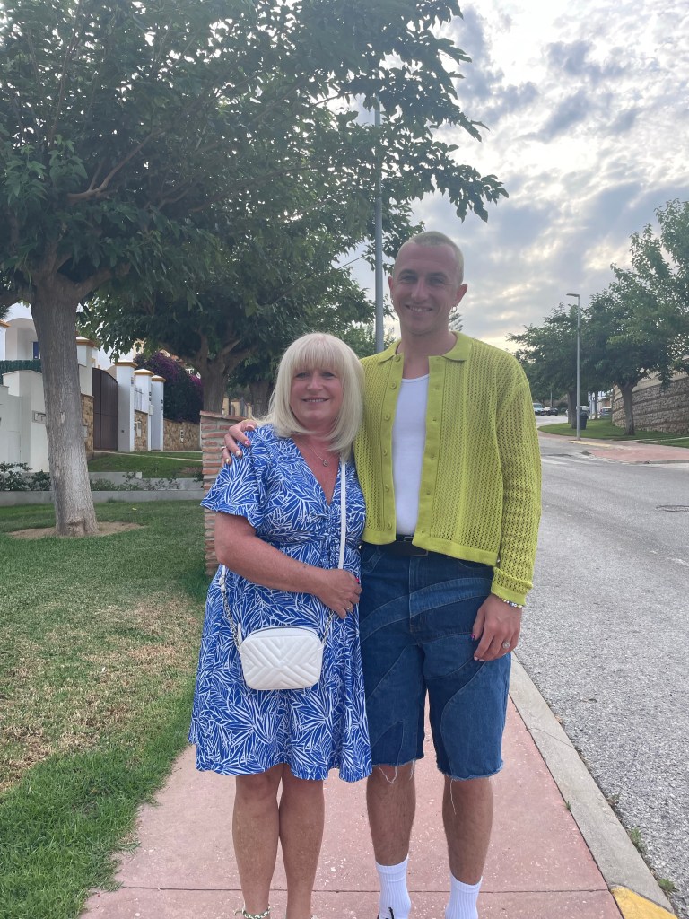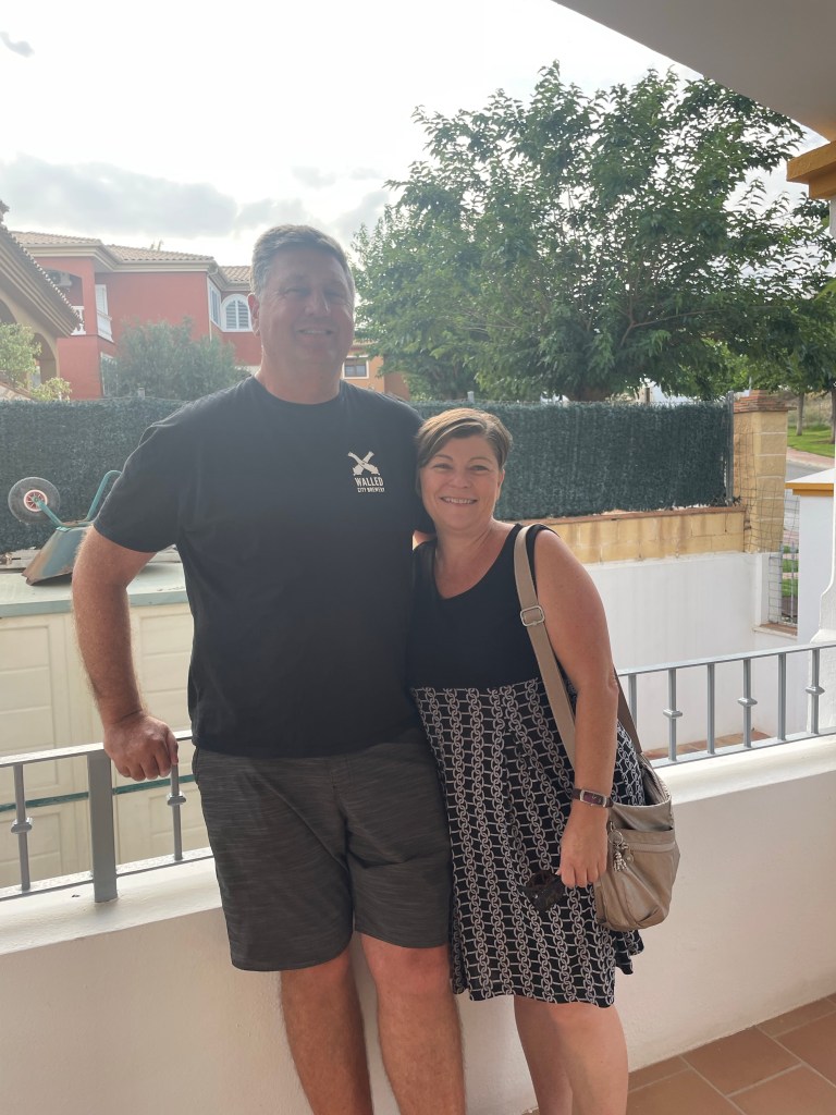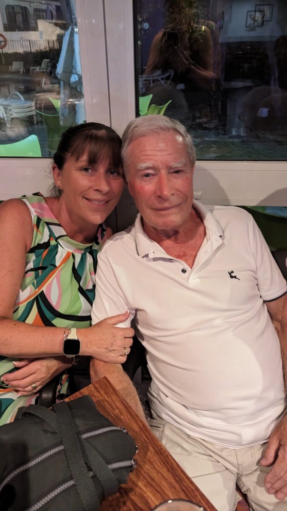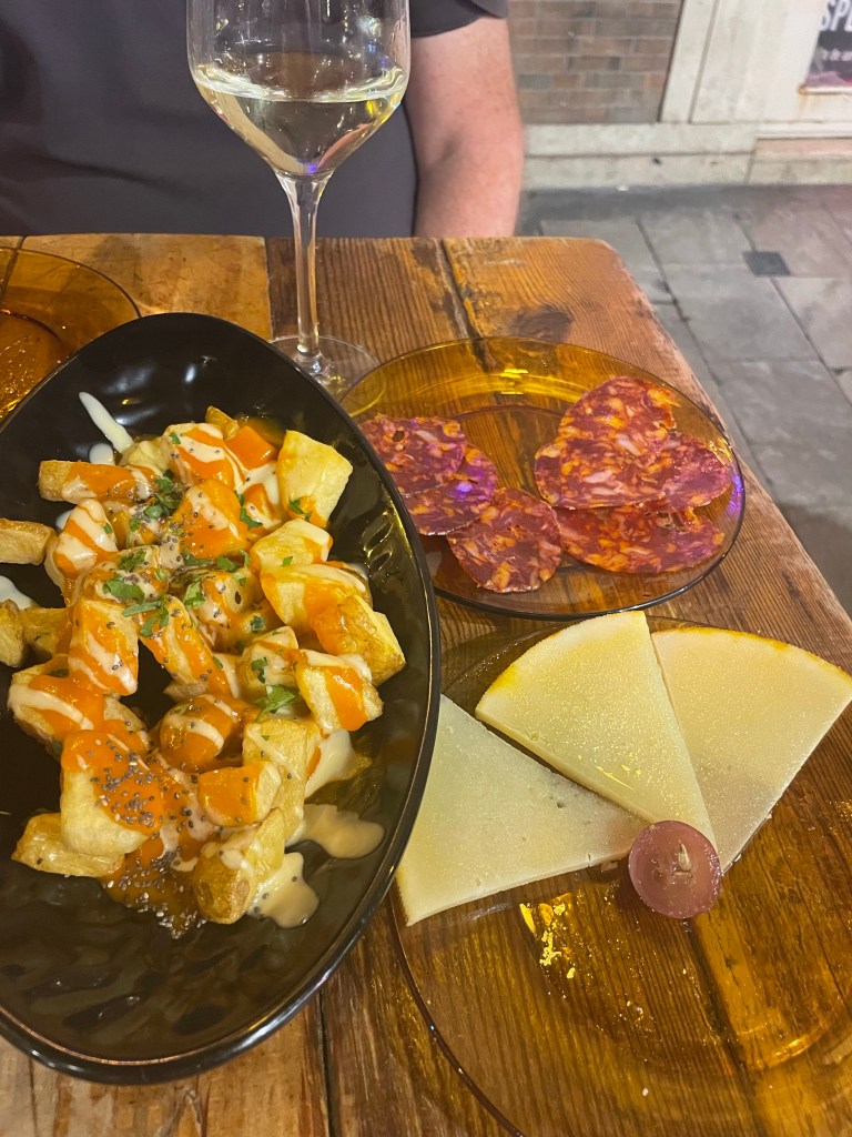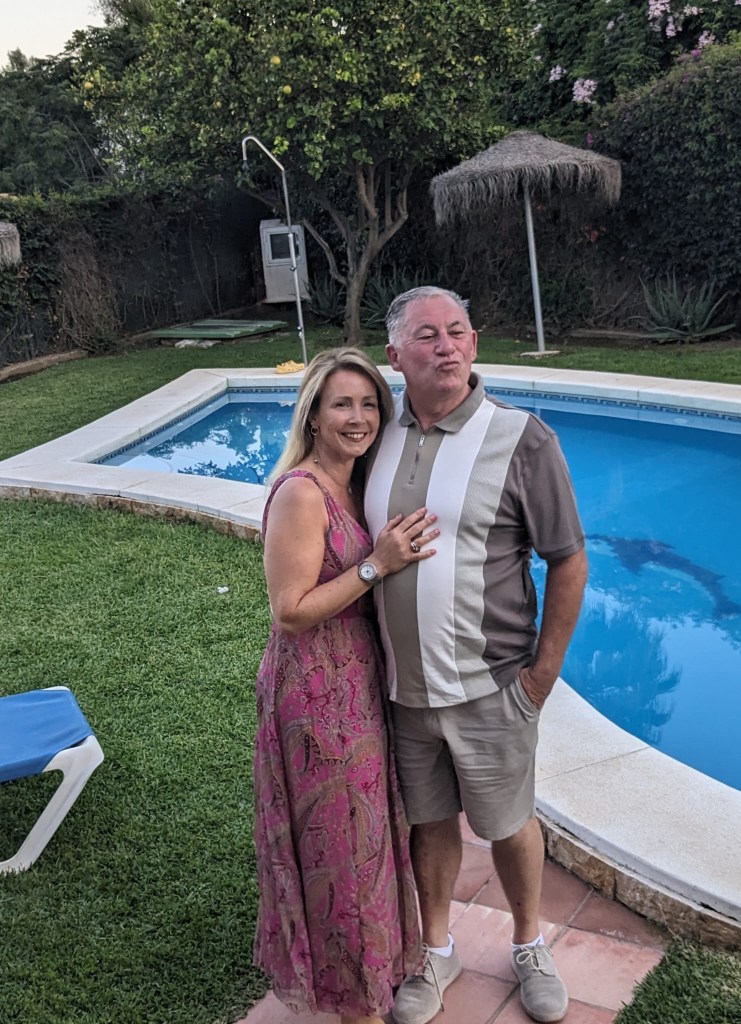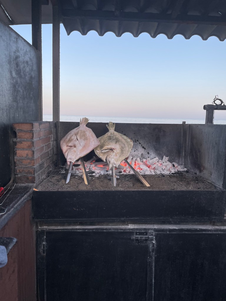 We have a drink upstairs on the terrace – a very nice white wine and San Miguel for the boys – that’s all they’ve got!! A first selfie with the gang back together before we move downstairs for dinner.