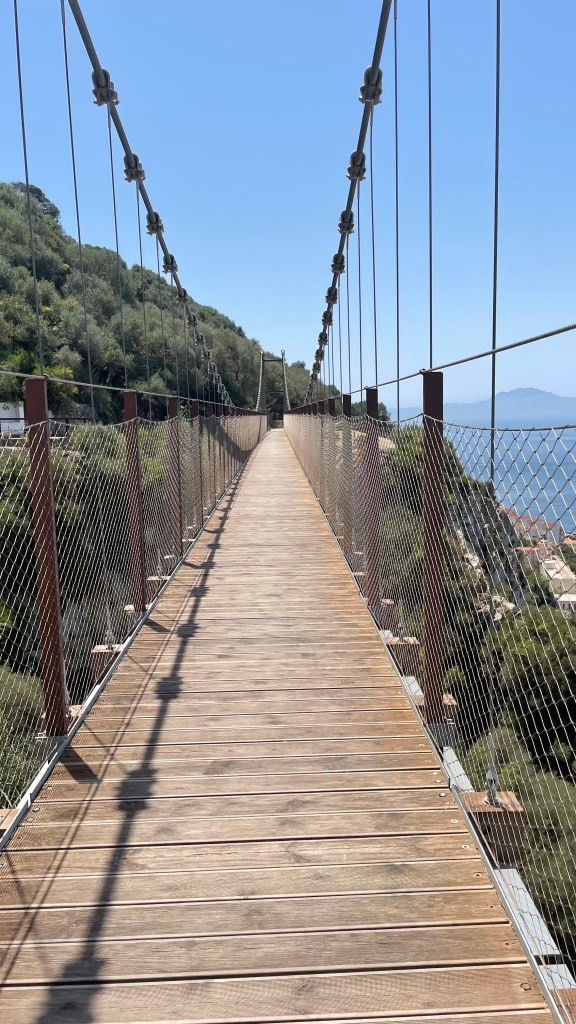 After a quick change and a little respite it’s off to the bamboo bridge. We cross this first one and have a happy hour cocktail …….