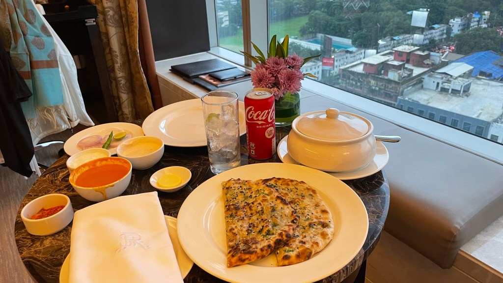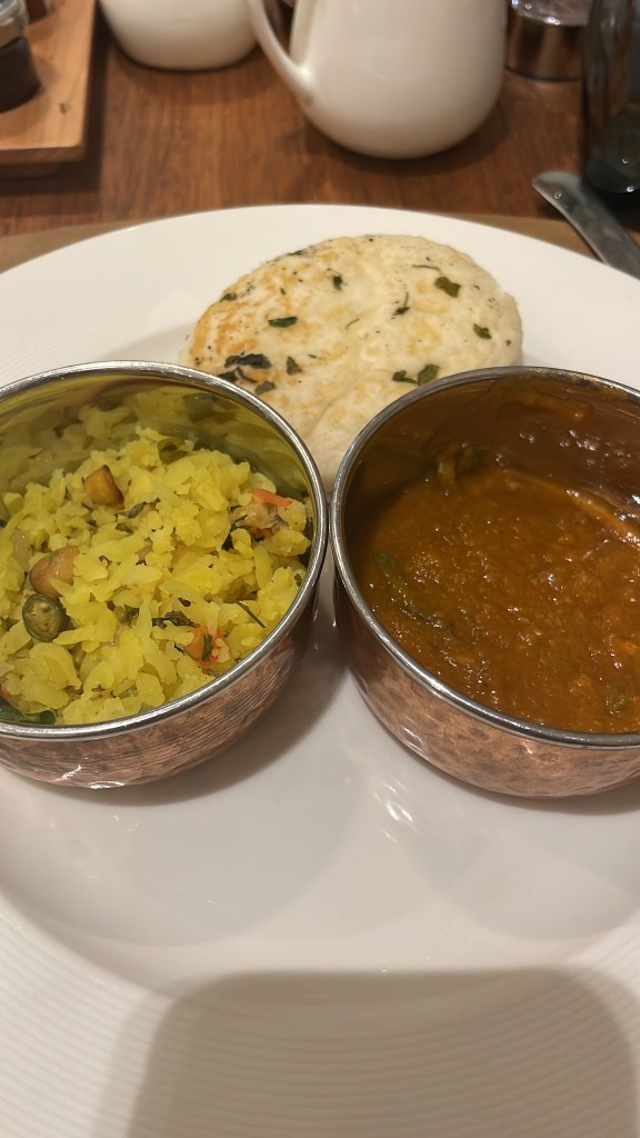 I’m knackered after a long day so opt for some room service – biryani and paratha.