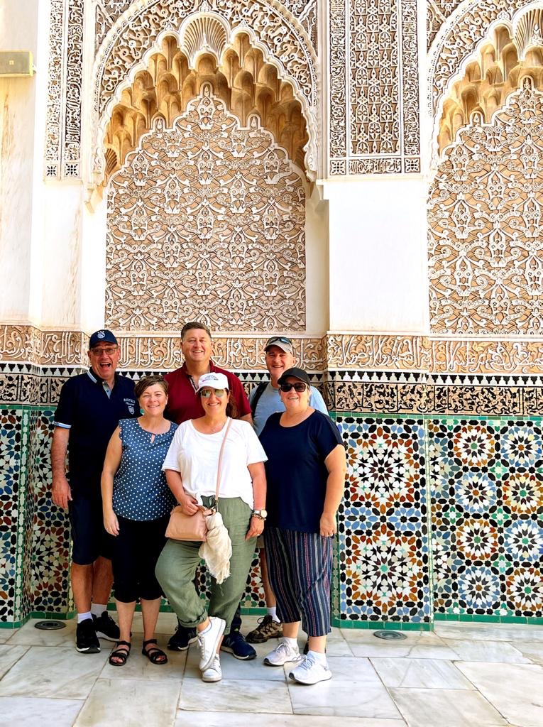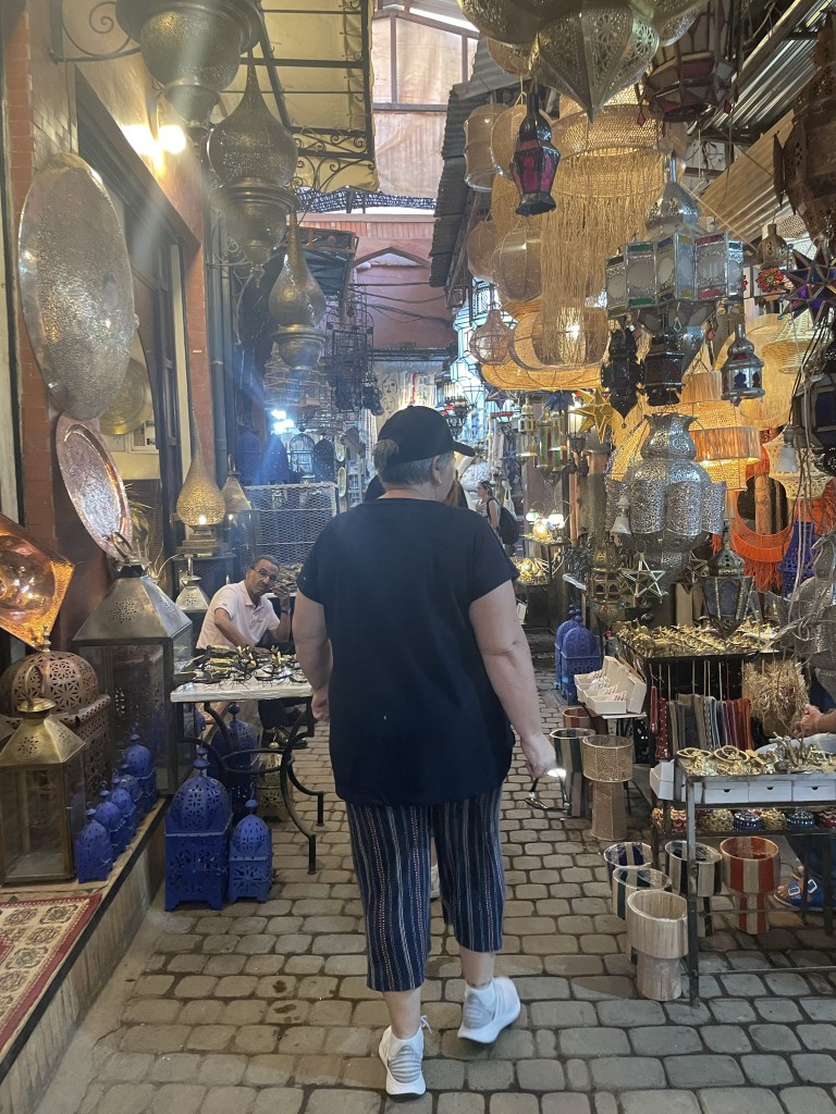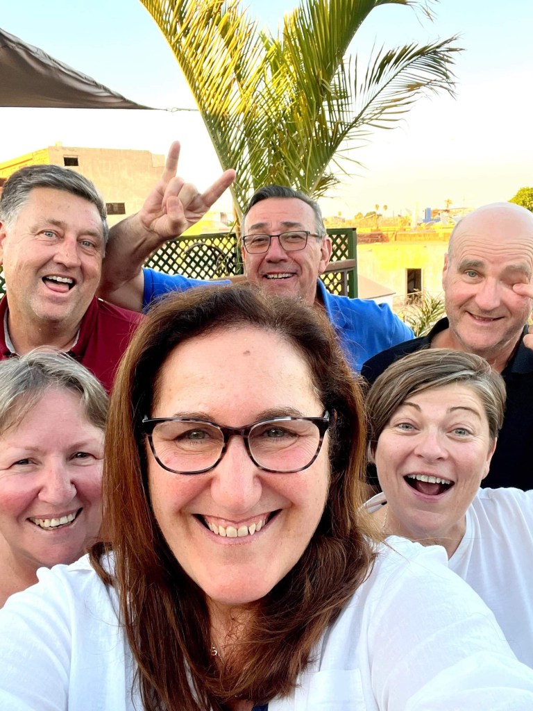 After dinner we go to “Cozy” bar in the Jewish square which is only a few minutes walk from our riad. Again they have Spanish beer but they also have an 8% beer from Casablanca which is the obvious choice for the lads. A few of those with white wine for the ladies on the outdoor terrace is lovely. I’m impressed by the background music which is a cool French jazzy tune and comment that’s it going on for a long time. I even Shazam it to see what it is. Then I realise it’s the same 3 minute (ish) song playing over and over again…. Argggh. It’s time to go!!