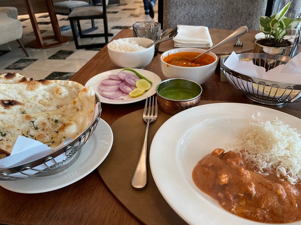 I’m already tired so it’s back to the hotel for some dinner and an early night. My first meal is delicious. I go for butter chicken with naan and it’s just a little spicy.