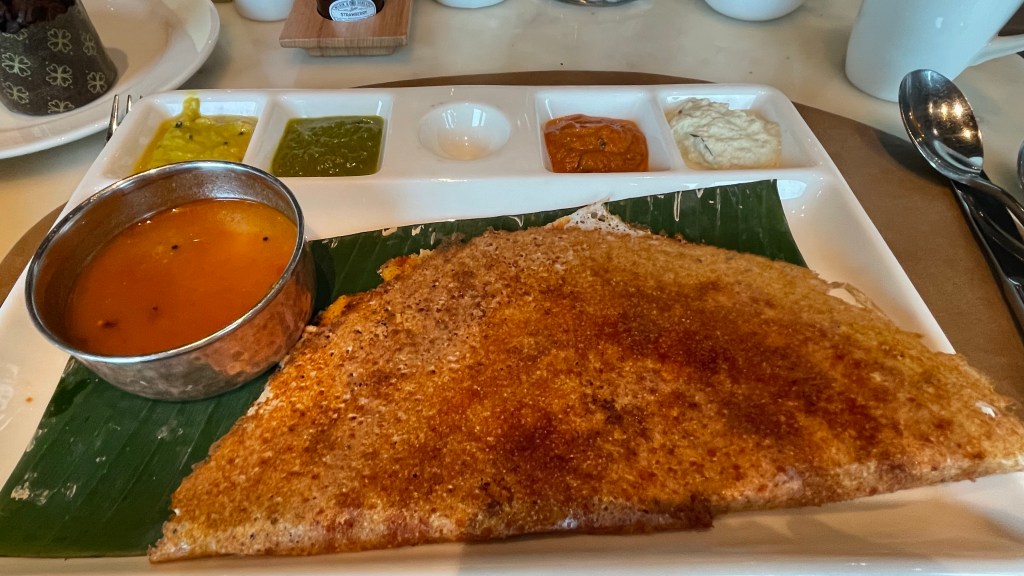 The food at the hotel really is fabulous, breakfast in particular. There are about eight different stations and every type of food imaginable, this morning I’m trying the dosa and it is really tasty.