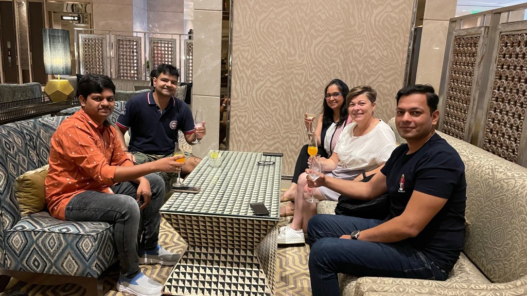 My butler (yes I have a butler service at this hotel) asks if I’d like him to unpack my case but I can’t get rid of him quick enough so I can get into bed. It’s a very comfy room and I can’t believe it’s 1pm on Sunday when I wake up. One of the guys from work has text me so I agree to meet him and go out to explore. We stop at a local eatery first as he’s hungry for lunch. I decline any grub for now as I’ve made a decision to be very careful and hopefully get through the trip without the dreaded Delhi belly!! We’ll see how that goes……
