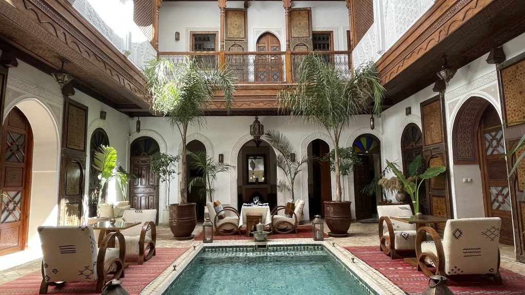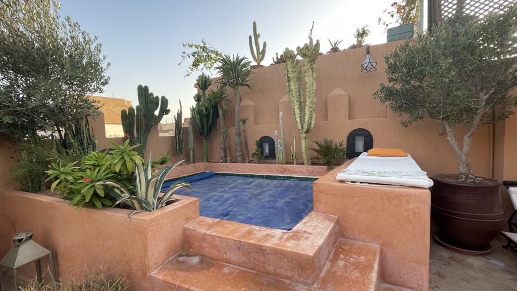 The riad itself has only nine guest rooms so it is quite small but it has a lovely terrace and overall is just really impressive.