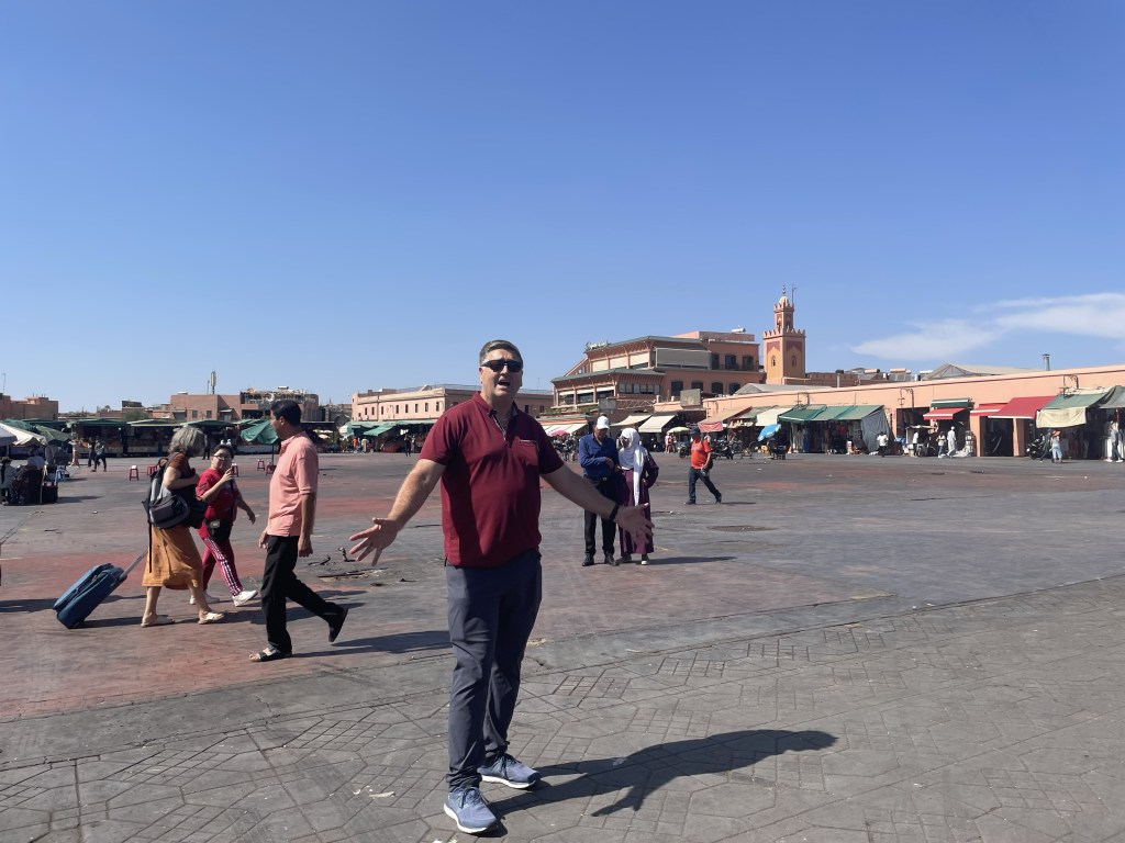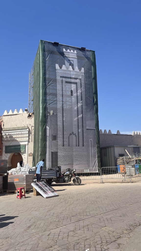 As we are leaving the square we see the remains of the minaret of the Kharbouch Mosque in Marrakech’s Jemaa el-Fnaa Square which collapsed during the earthquake. This one was all over the news.