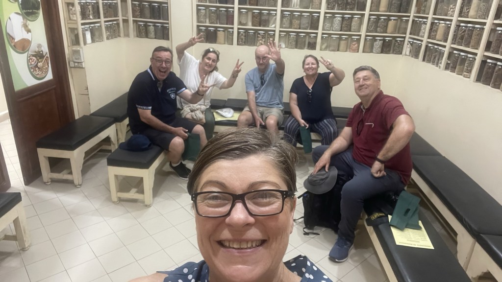 We all buy a few bits and pieces and the ladies get a gift of a green lipstick which actually is pink or red on your lips depending on your temperature. I’m particular excited to try my ras el hamout spice when I get home.