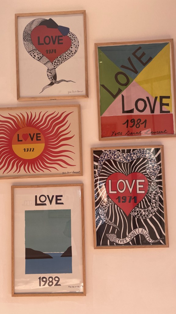 After Majorelles death the estate fell into disrepair and it was purchased by Yves St Laurent. At the end of the garden there is a “love gallery”. Apparently YSL designed a postcard each year to send friends and it was always about love… I love it! (pun intended)