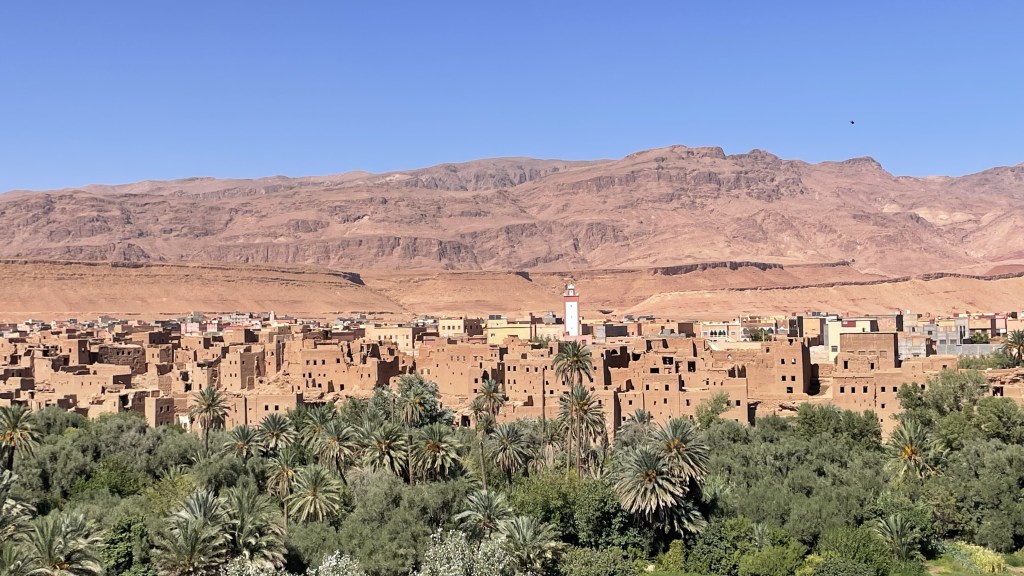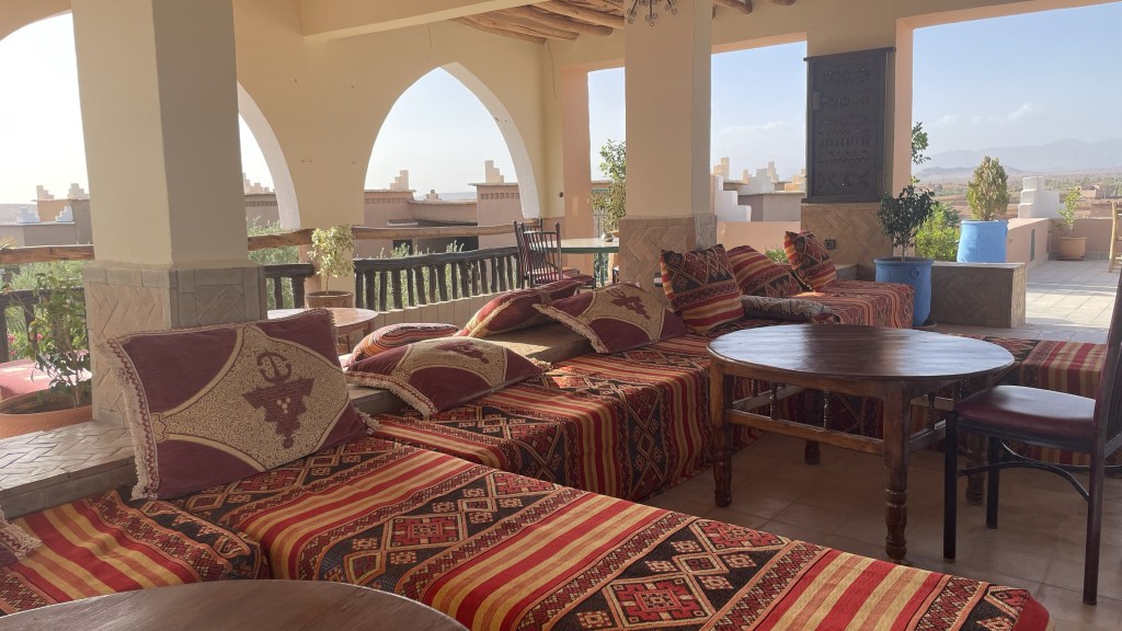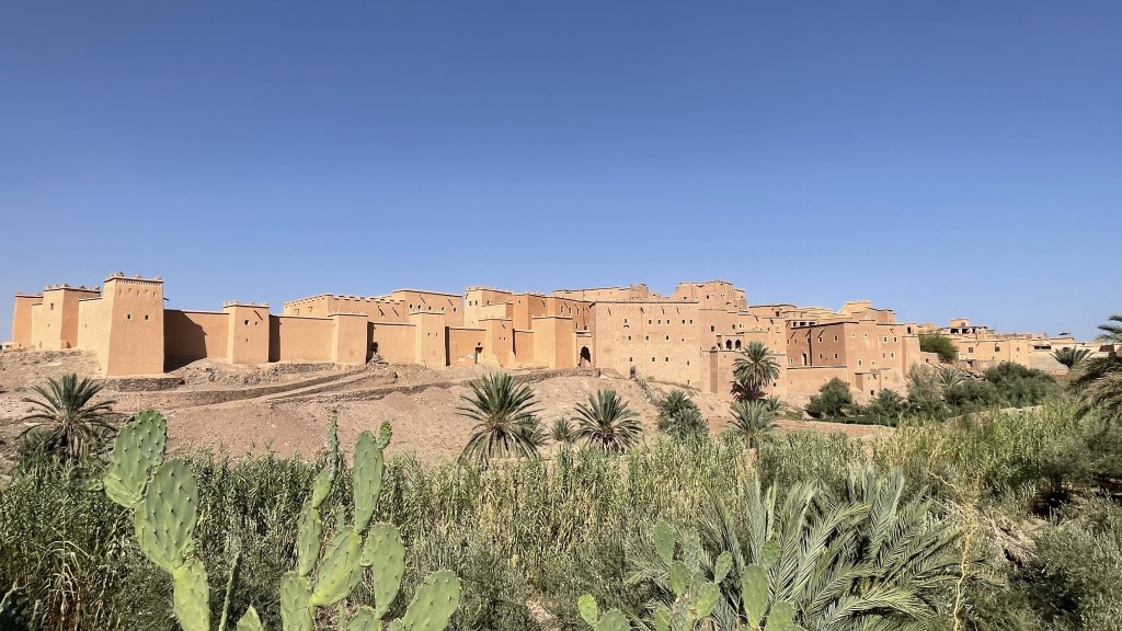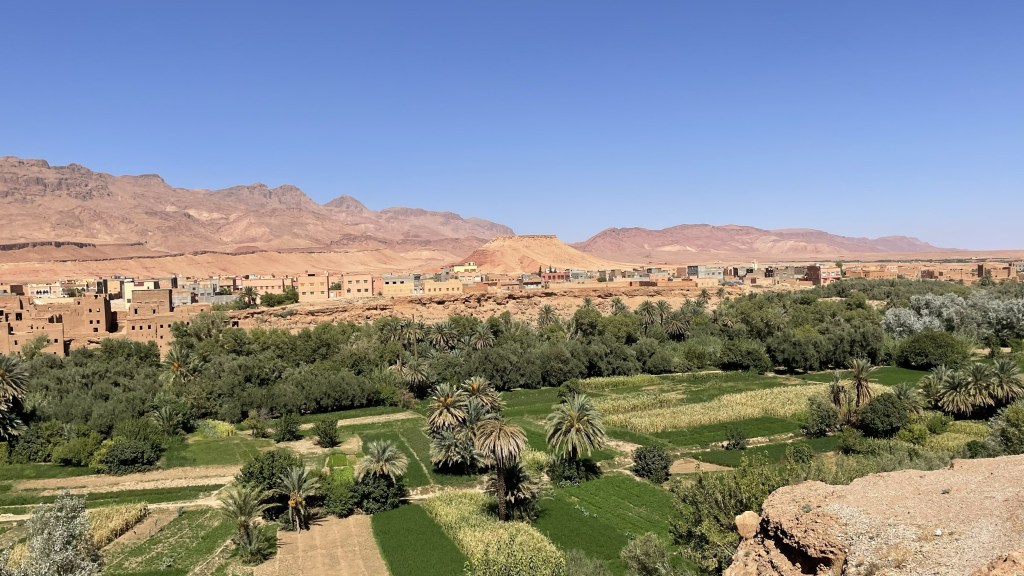 In our remote resort in Skoura, we have our first breakfast buffet and it has all the usual suspects but also includes eggs and some mystery meat. It’s delicious as usual. We’re all done by 8:30am and are ready to explore more of this interesting countryside. First stop is Amerhidil kasbah.
