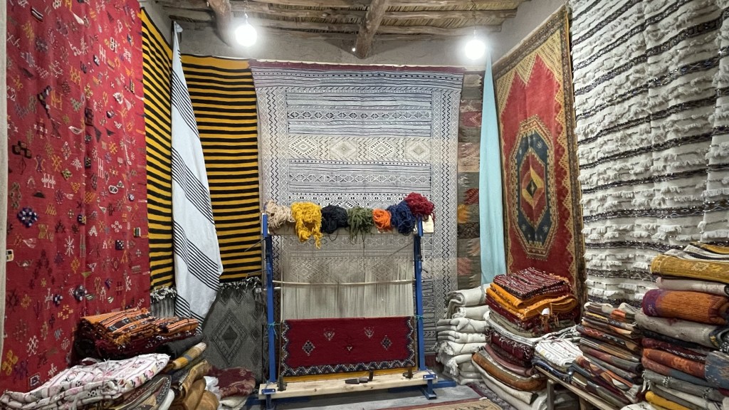 We walk around the back of the building to a room where we have an opportunity to view some handmade carpets. This carpet shop is a woman’s cooperative supported by the USA. All of the money spent will go directly to the women and families who weave the carpets (hopefully)!