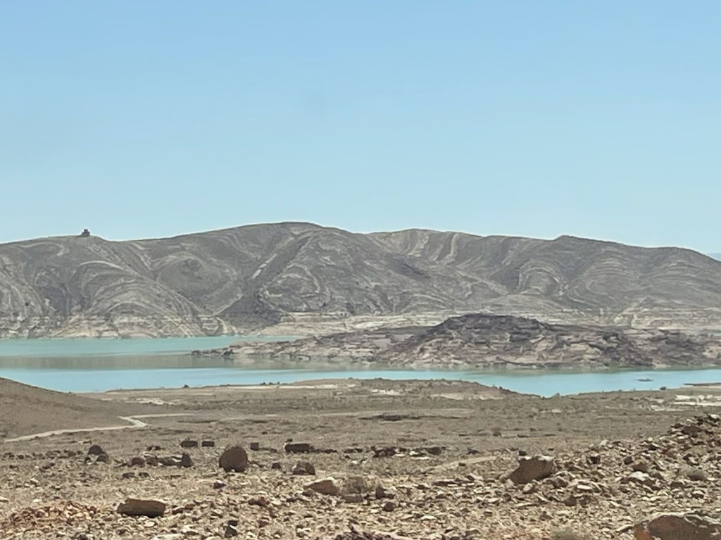 We admire another change in the landscape and even see some water which has been rare. The rivers we’ve seen have all been dry as there’s been no rain and no snow on the mountains to melt.