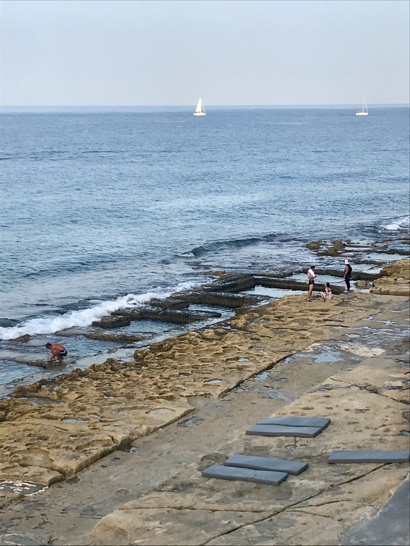 I stop here for a few minutes as there’s a guy trying to get up on a surf board. I watch him make two attempts but he can only manage to paddle on the board. Just as I put away my camera and on his third attempt he stands on the board – it was very impressive.