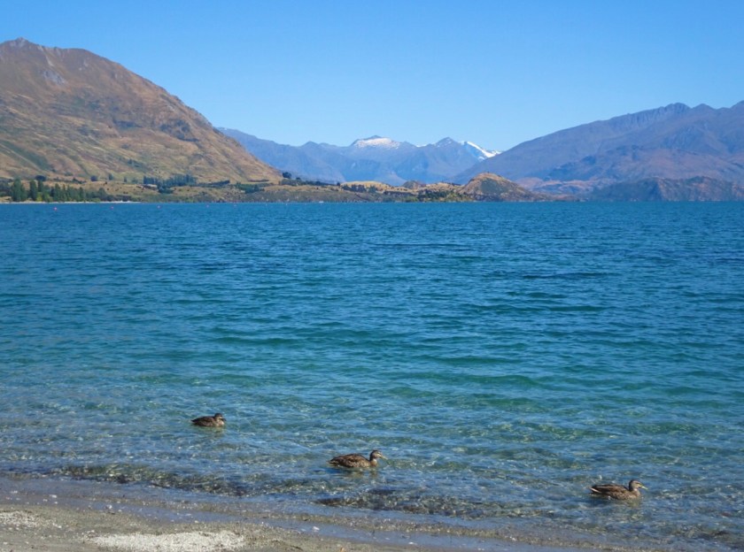 I continue towards Lake Wanaka and the first view that appears is “the neck” of the lake. It’s so pretty driving toward it. It’s like driving into a billboard for a holiday advertisement.